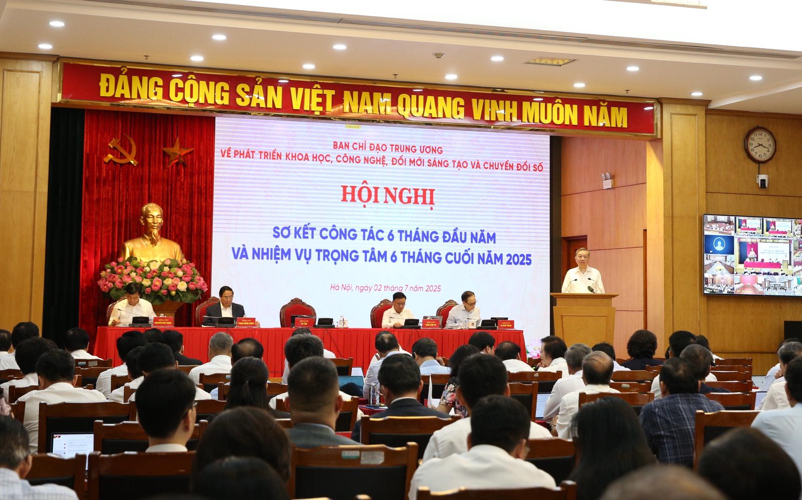 Toàn cảnh Hội nghị sơ kết 6 tháng đầu năm và nhiệm vụ 6 tháng cuối năm 2025 của Ban Chỉ đạo Trung ương về phát triển khoa học, công nghệ, đổi mới sáng tạo và chuyển đổi số. Ảnh: N.Hoàng
