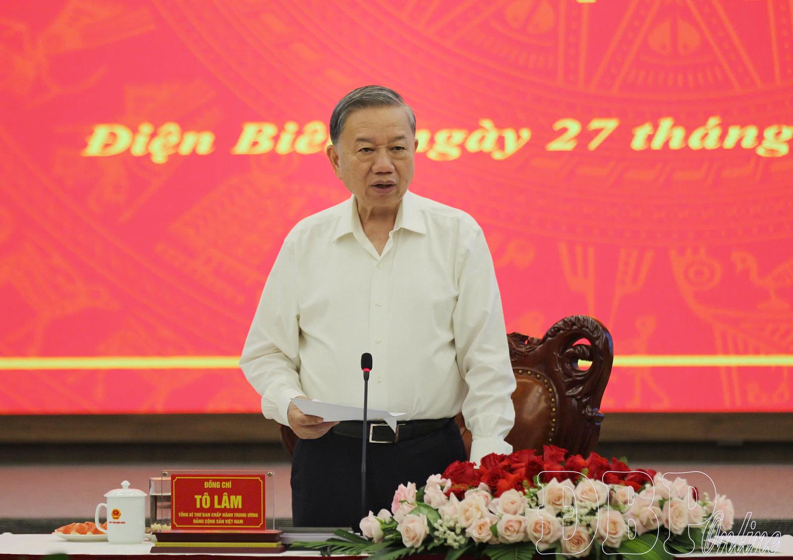 Tổng Bí thư Tô Lâm phát biểu chỉ đạo hội nghị. Ảnh: baodienbienphu.vn