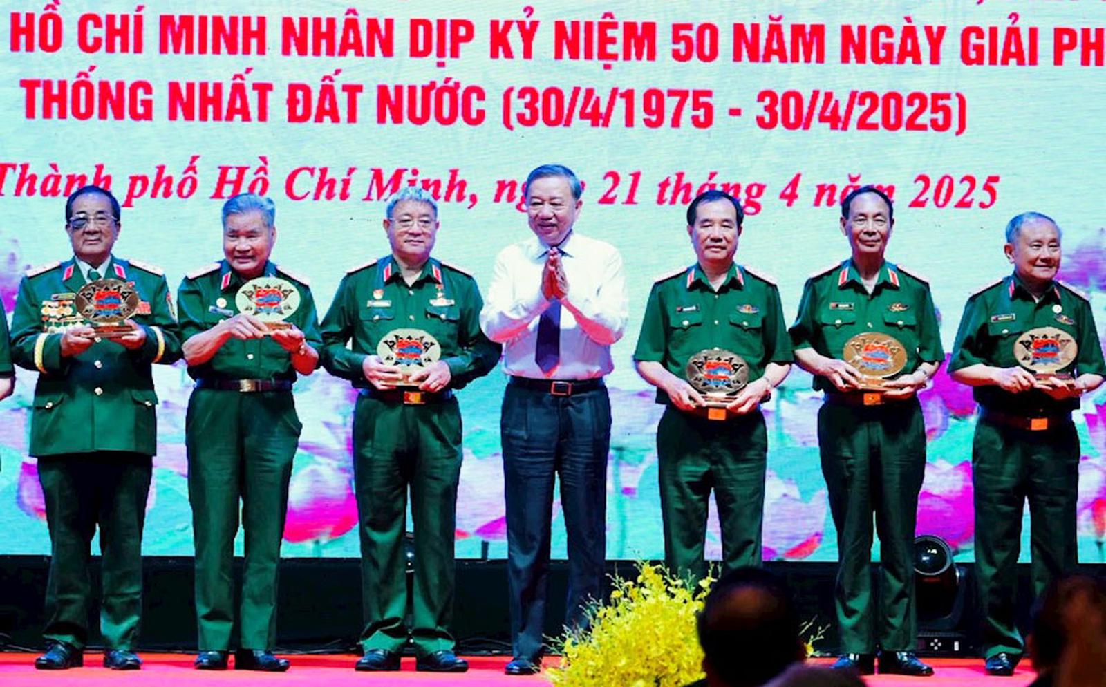 (Thanh tra) - Chiều 21/4, tại Thành phố Hồ Chí Minh, Tổng Bí thư Tô Lâm đã gặp mặt đại biểu tướng lĩnh, Anh hùng Lực lượng vũ trang Nhân dân, điệp báo, biệt động Sài Gòn, du kích, cựu thanh niên xung phong, dân công hỏa tuyến tham gia Chiến dịch Hồ Chí Minh.