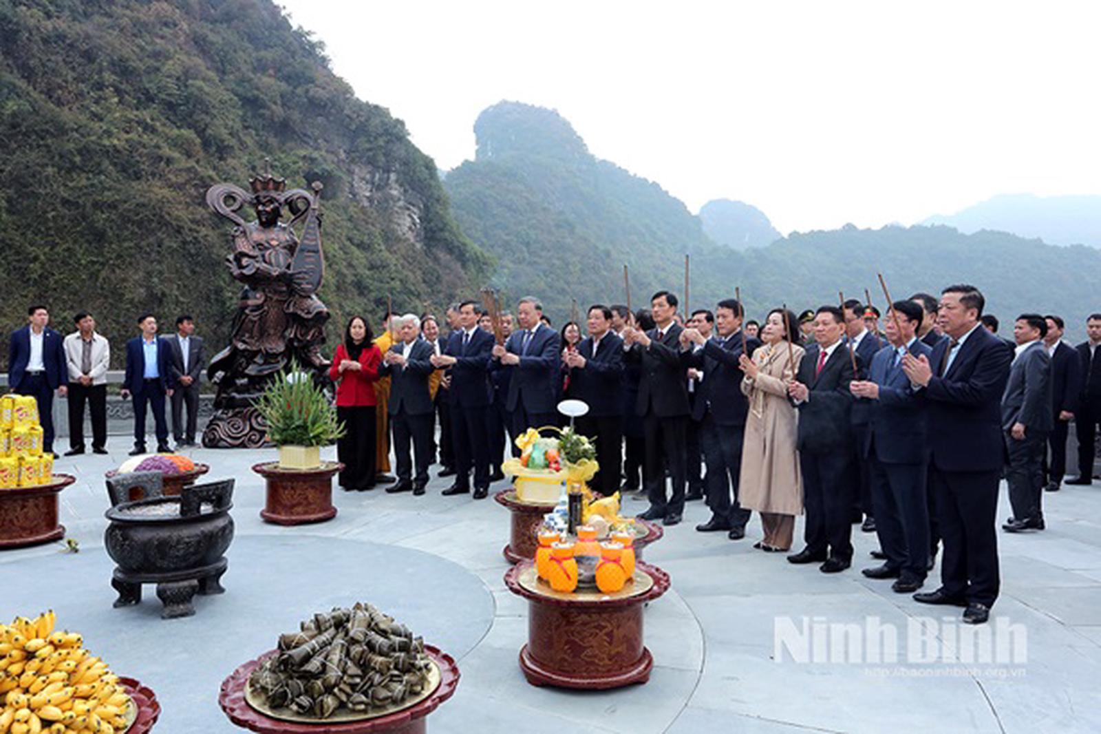 Tại lễ dâng hương, với tấm lòng thành kính tri ân công đức của các bậc tiền nhân, thể hiện đạo lý “Uống nước nhớ nguồn” của dân tộc Việt Nam, Tổng Bí thư và các đại biểu đã tưởng nhớ công lao to lớn của các bậc tiên đế, các vị anh hùng dân tộc và nguyện cùng toàn Đảng, toàn quân, toàn dân tiếp tục phát huy tinh thần cách mạng và truyền thống yêu nước của dân tộc, cùng đoàn kết vượt qua mọi khó khăn, thử thách, nỗ lực phấn đấu chung sức, đồng lòng quyết tâm hoàn thành thắng lợi các mục tiêu, nhiệm vụ mà Nghị quyết Đại hội Đảng toàn quốc lần thứ XIII đã đề ra, tạo đà đưa đất nước vào giai đoạn phát triển mới vững bước vào kỷ nguyên mới - kỷ nguyên vươn mình của dân tộc.