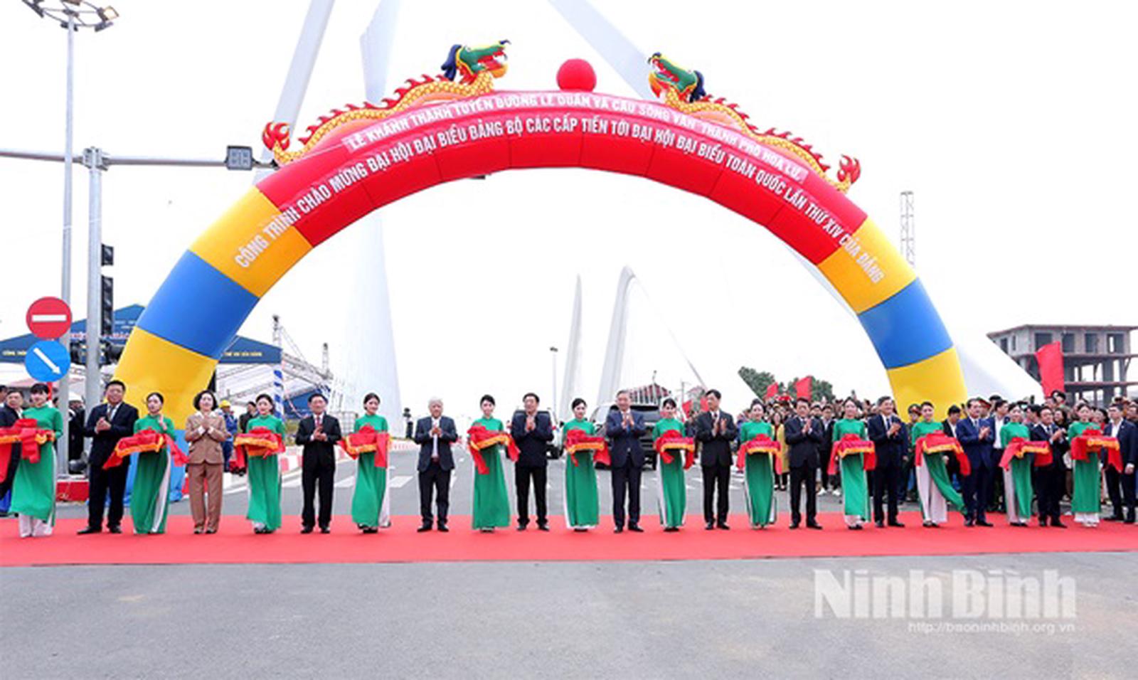 Trong khuôn khổ chuyến thăm và làm việc tại Ninh Bình nhân dịp Xuân Ất Tỵ năm 2025, đồng chí Tổng Bí thư và đoàn công tác đã dự lễ khánh thành tuyến đường Lê Duẩn và cầu vượt sông Vân, thành phố Hoa Lư.