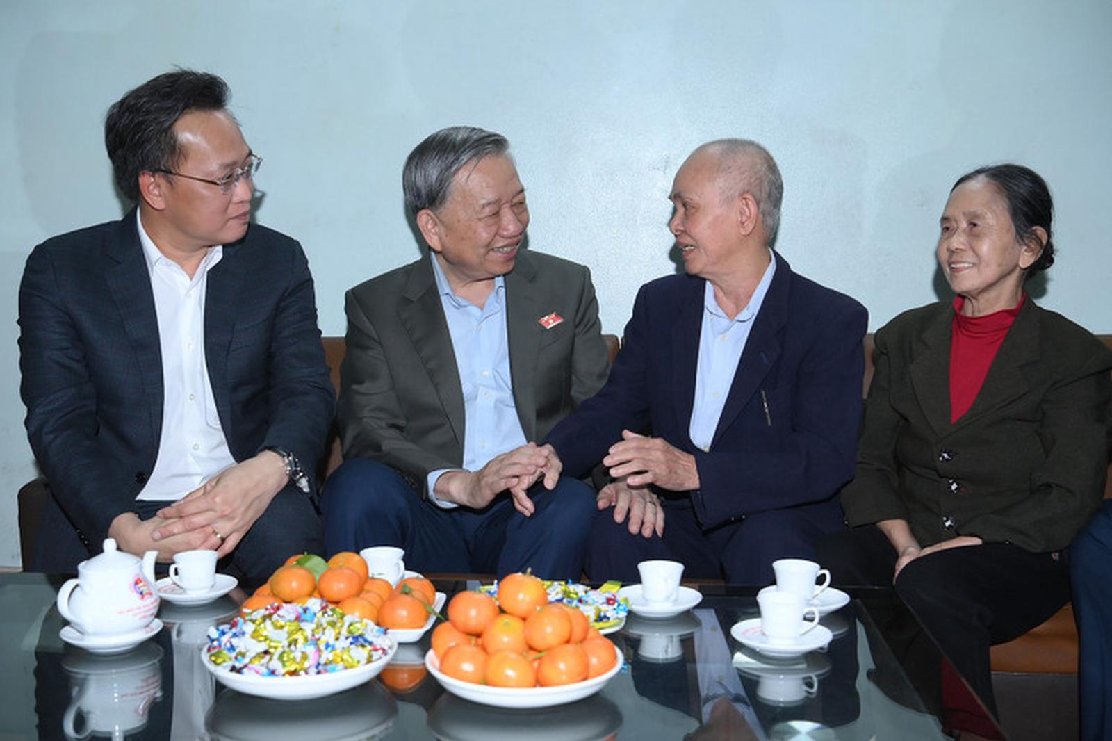 Chiều cùng ngày, Tổng Bí thư Tô Lâm đã đến thăm, tặng quà gia đình ông Nguyễn Trọng Hiếu, sinh năm 1948 (thôn Quang Trung, xã Kiến Xương, tỉnh Hưng Yên), thương binh 81%.