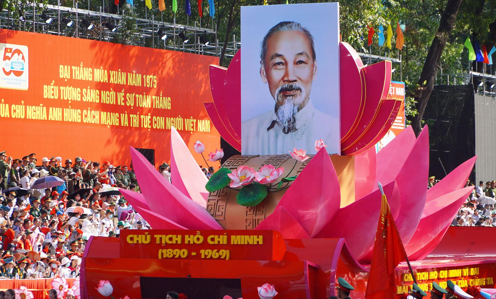 Xe rước chân dung Chủ tịch Hồ Chí Minh tiến vào lễ đài. Ảnh: NH