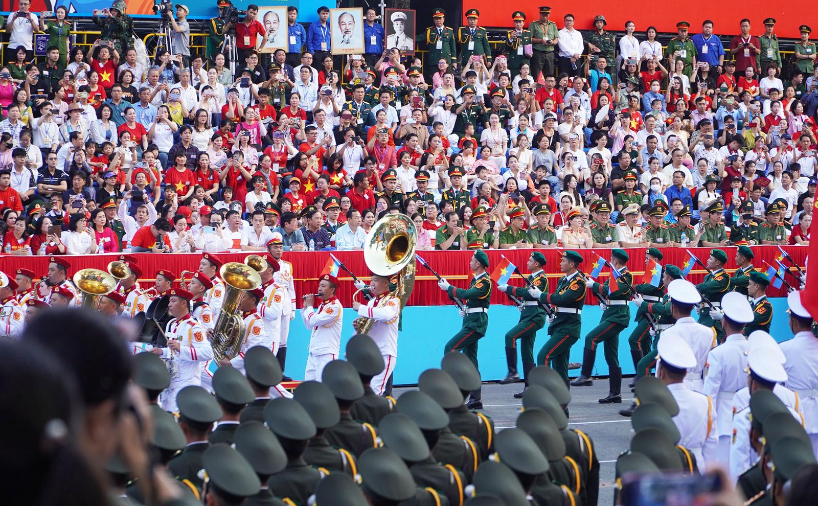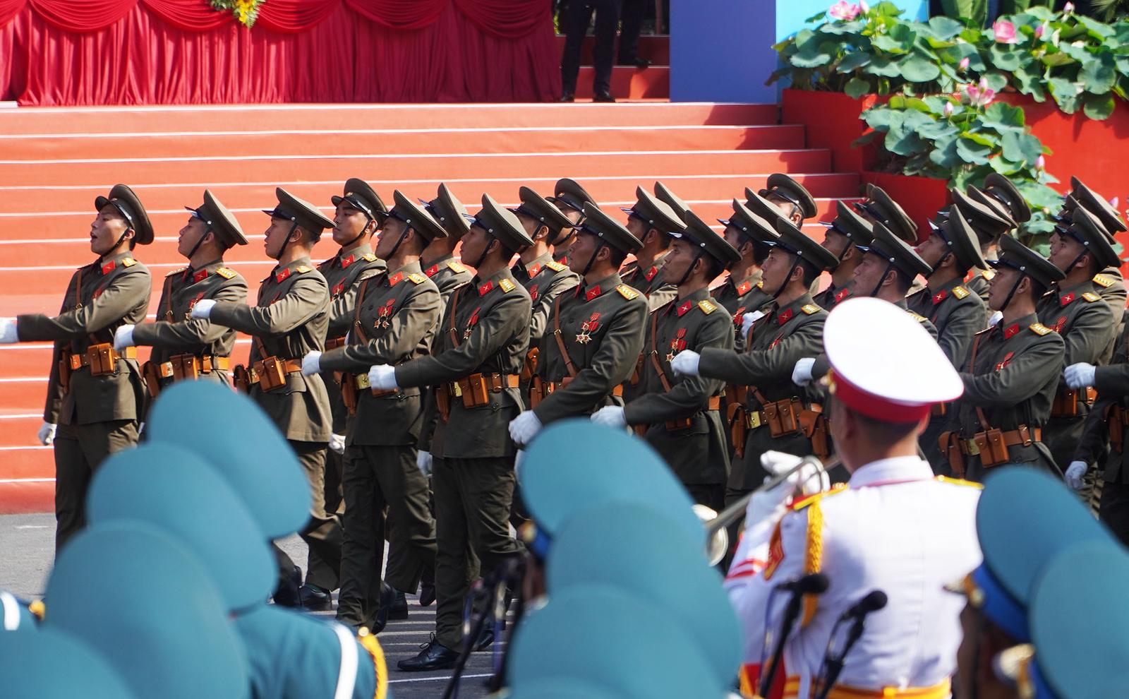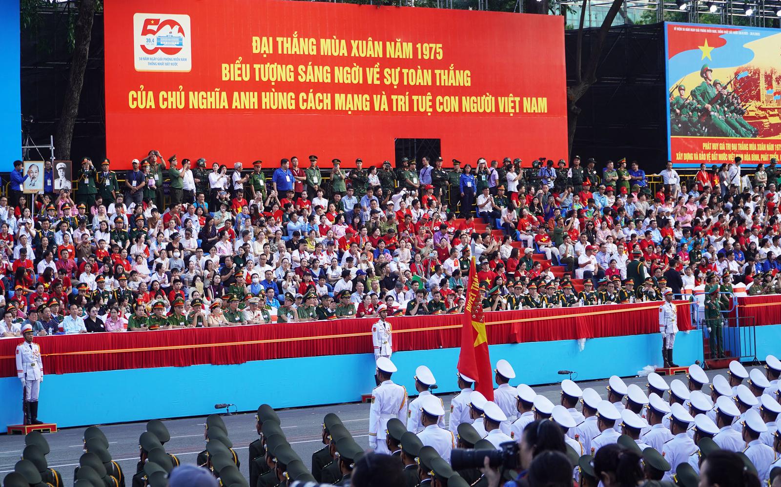 Nghi thức diễu binh, diễu hành tại lễ tổng duyệt kỷ niệm 50 năm Ngày Giải phóng miền nam, thống nhất đất nước. Ảnh: NH
