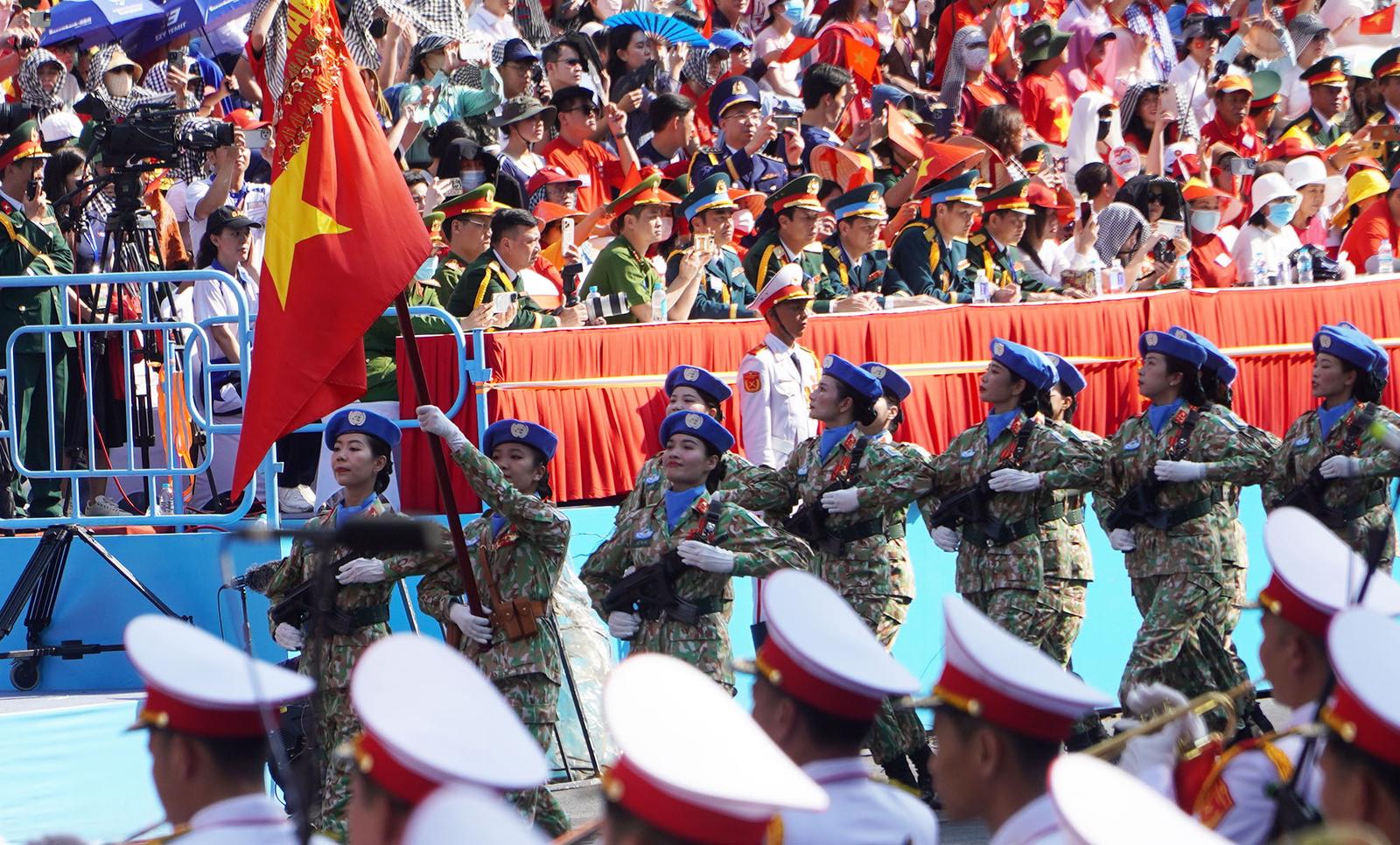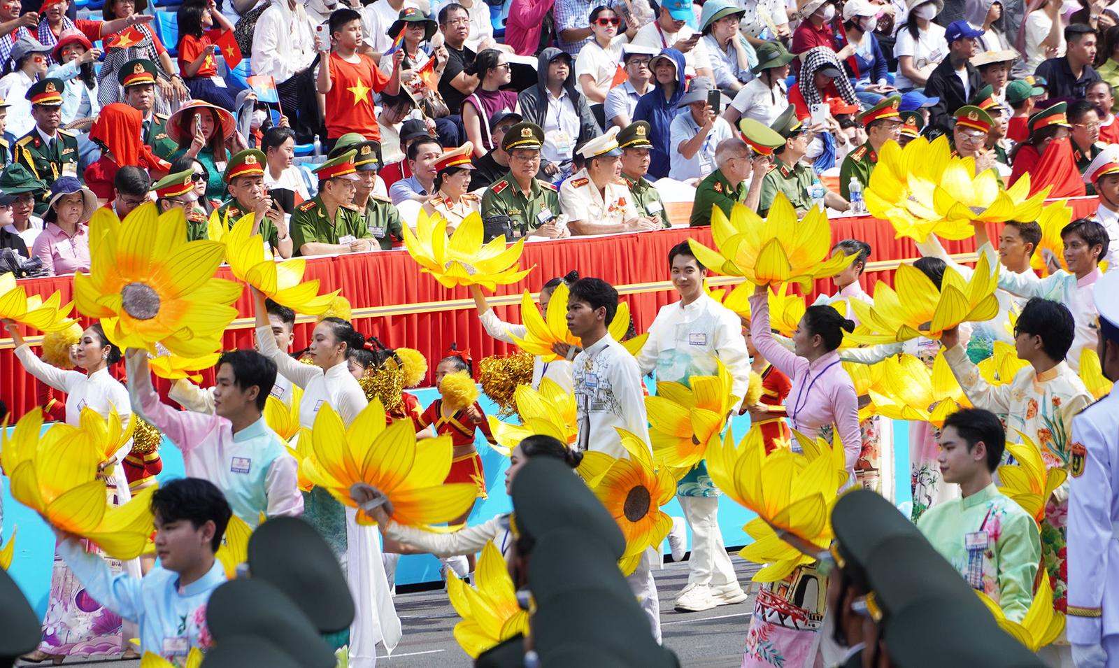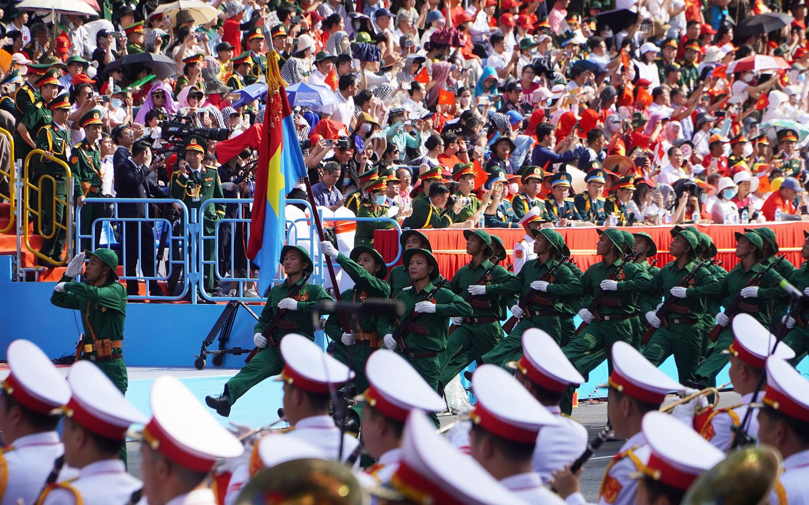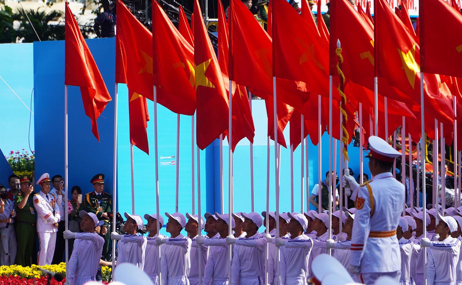 Nghi thức diễu binh, diễu hành tại lễ tổng duyệt kỷ niệm 50 năm Ngày Giải phóng miền nam, thống nhất đất nước. Ảnh: NH