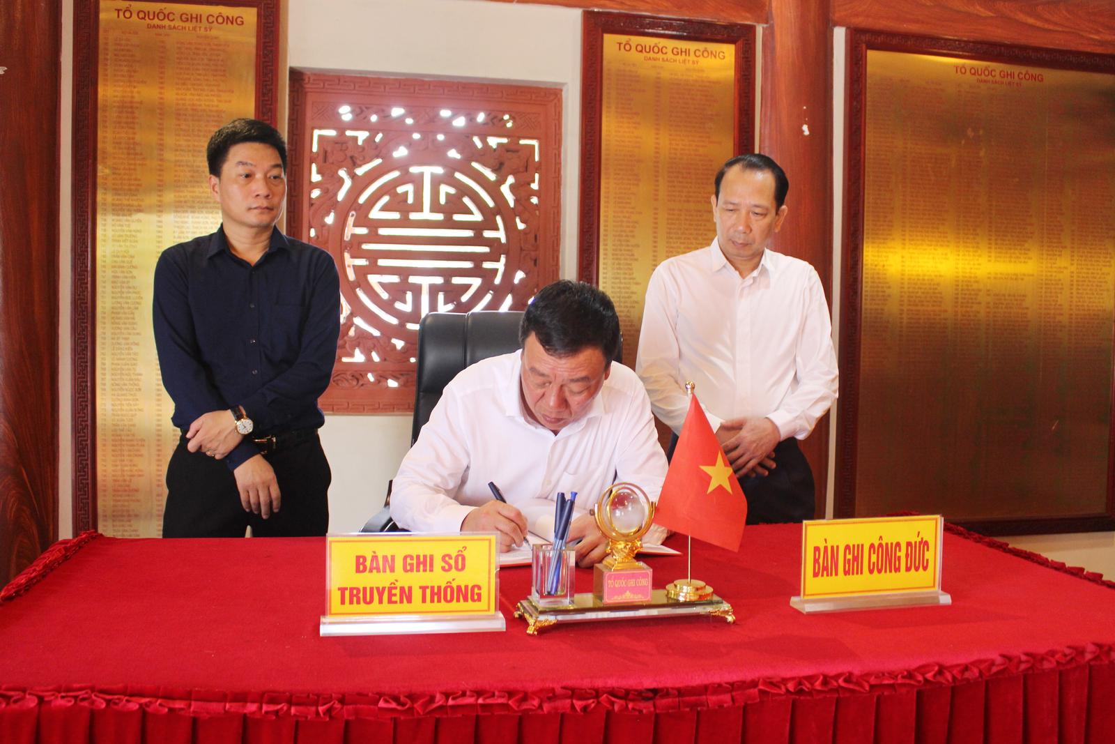 Tổng TTCP Đoàn Hồng Phong ghi sổ truyền thống tại Đền thờ Liệt sĩ. Ảnh: LP