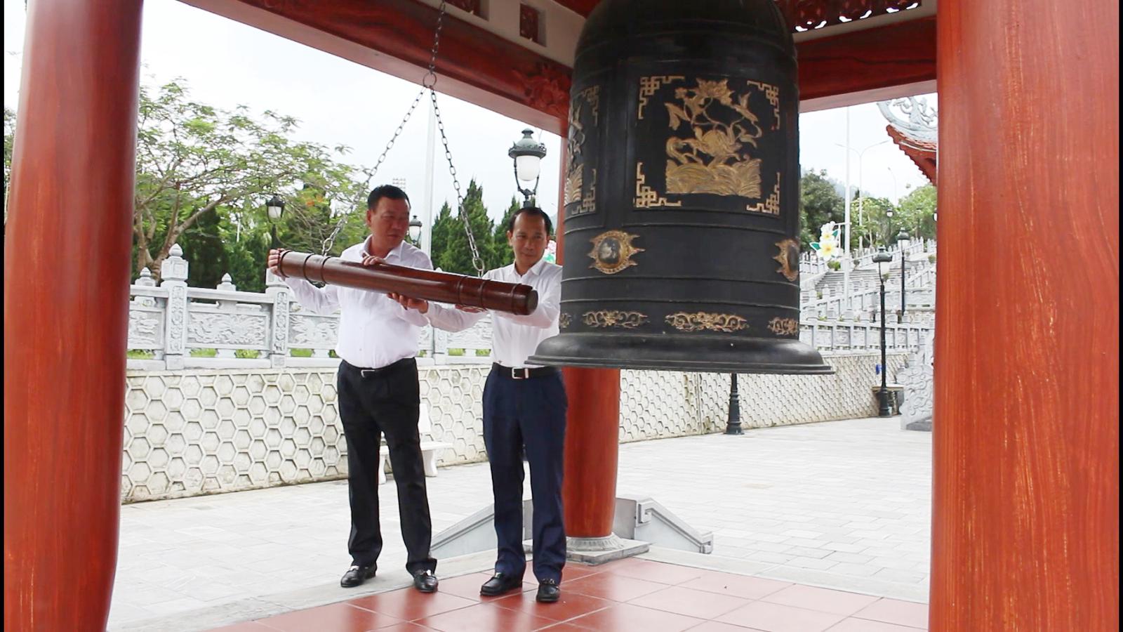 Tổng TTCP Đoàn Hồng Phong (trái ảnh) cùng Phó Chủ tịch UBND tỉnh Hà Giang Trần Đức Quý thỉnh chuông tại Đền thờ Liệt sĩ, Nghĩa trang Liệt sĩ Quốc gia Vị Xuyên. Ảnh: LP