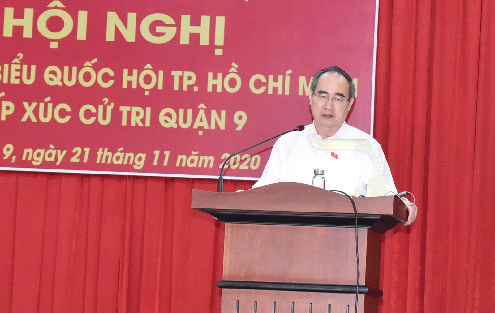 (Thanh tra) - Đó là một trong những ý kiến nổi bật tại buổi tiếp xúc cử tri quận 9 sau kỳ họp thứ 10, Quốc hội khóa XIV của Đoàn Đại biểu Quốc hội (ĐBQH) TP HCM đơn vị số 7. Ủy viên Bộ Chính trị, Trưởng Đoàn ĐBQH TP HCM Nguyễn Thiện Nhân tham dự.