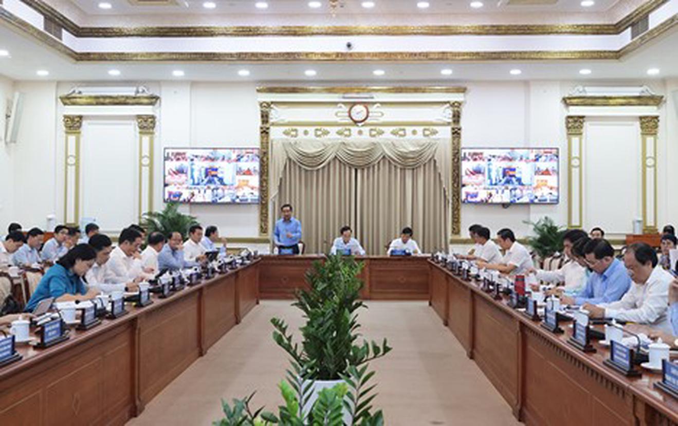 Bí thư Thành uỷ TP Hồ Chí Minh cùng lãnh đạo HĐND-UBND chủ trì cuộc họp. Ảnh: CTT