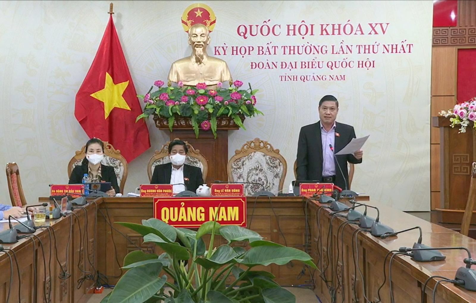 Đại biểu Phan Thái Bình phát biểu tranh luận từ điểm cầu Quảng Nam. Ảnh: Đ.X