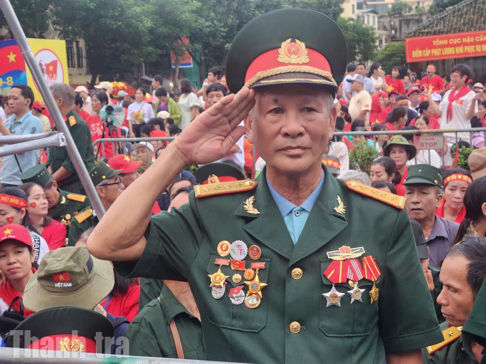 Dưới cờ Tổ quốc tung bay, trong không khí náo nức, hân hoan mừng 80 năm thành lập nước Việt Nam, ông đứng chào cờ, thay mặt cho những người đồng đội đã hy sinh dự đại lễ 2/9.
