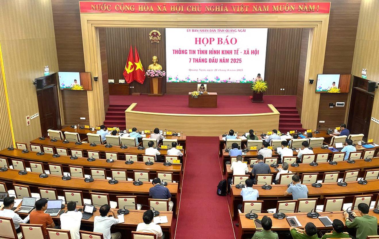 UBND tỉnh Quảng Ngãi tổ chức họp báo 7 tháng đầu năm 2025. Ảnh: TL