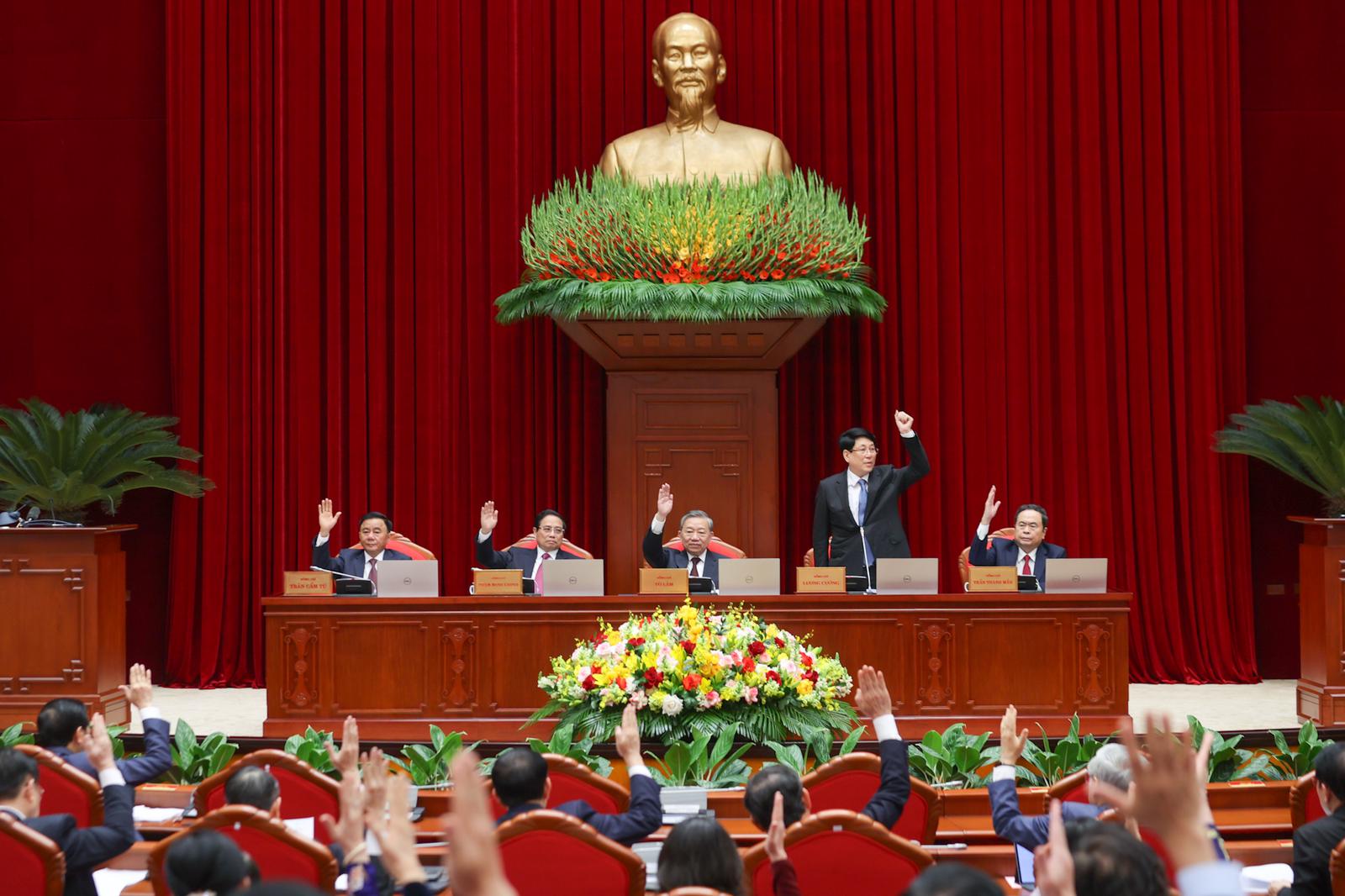 Ban Chấp hành Trung ương Đảng làm việc tại hội trường. Tổng Bí thư Tô Lâm phát biểu khai mạc hội nghị. Ủy viên Bộ Chính trị, Chủ tịch nước Lương Cường thay mặt Bộ Chính trị điều hành hội nghị.