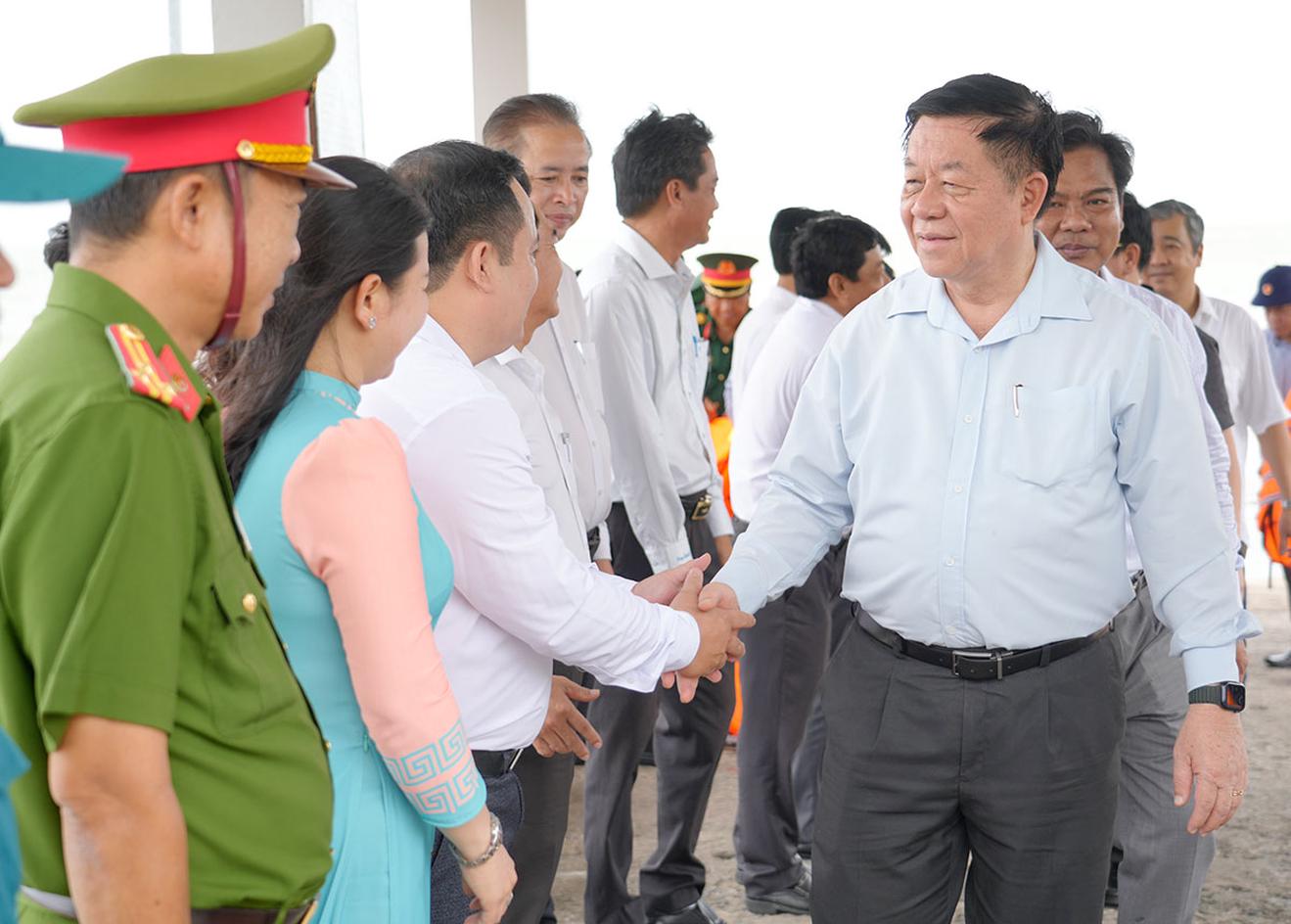 Trưởng ban Tuyên giáo và Dân vận Trung ương Nguyễn Trọng Nghĩa thăm cán bộ, chiến sĩ đặc khu Kiên Hải. Ảnh: Tây Hồ/AGO