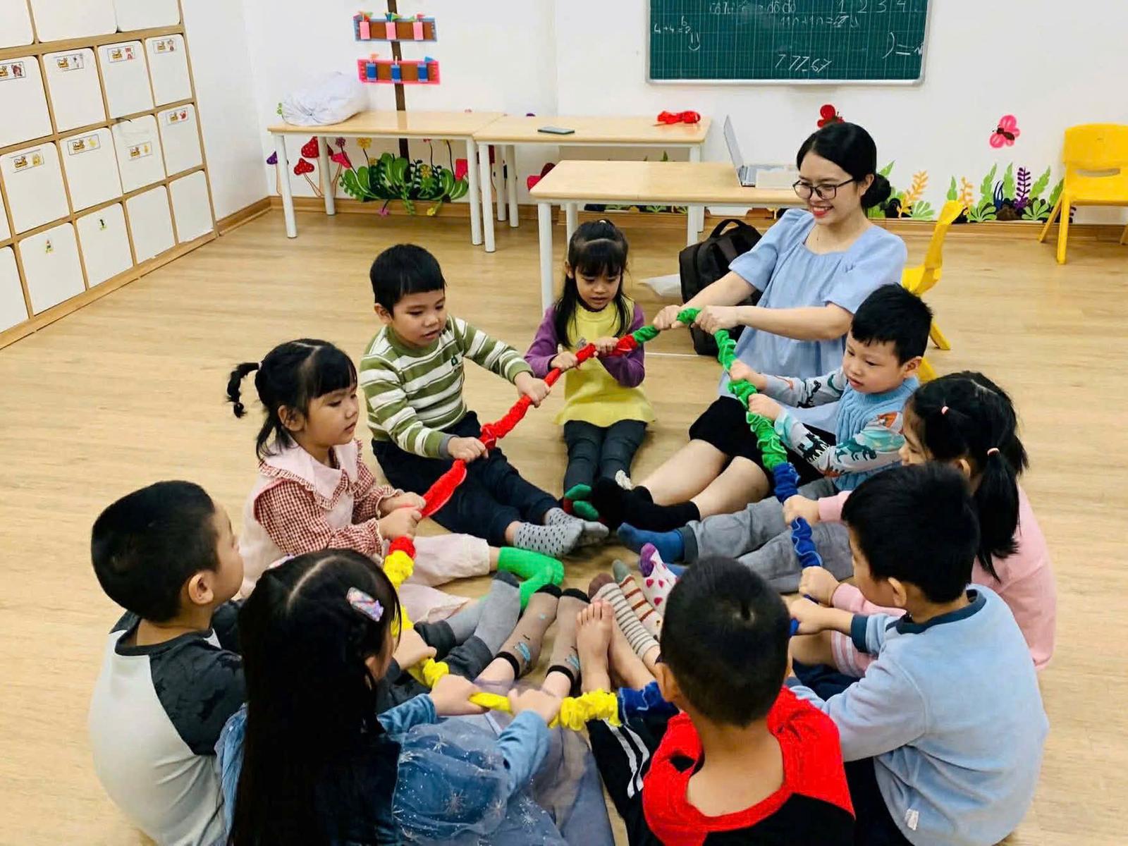 Giáo viên Lê Minh Khuê và các em nhỏ vui chơi, học tập – thể hiện cho cuộc sống bình yên, ổn định mà Đảng mang lại, tạo nền tảng để các thế hệ tương lai phát triển toàn diện. Ảnh: Nhân vật cung cấp.