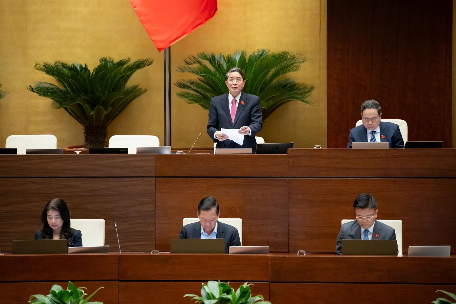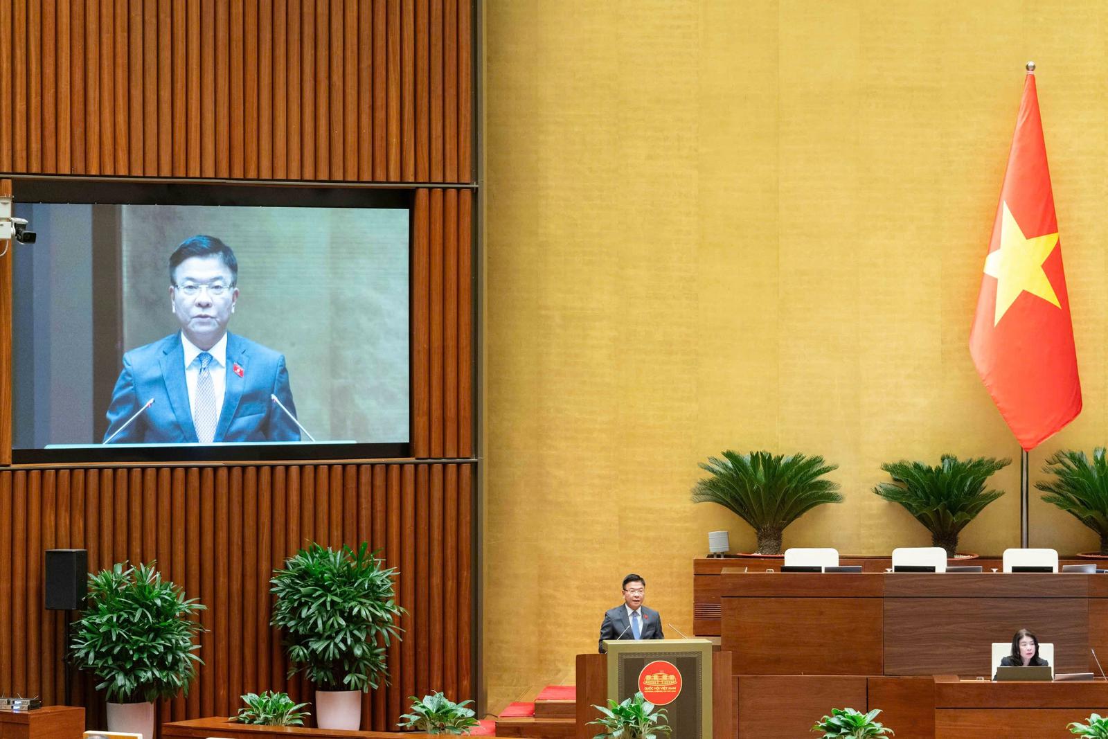Phó Thủ tướng Lê Thành Long báo cáo trước khi Quốc hội biểu quyết. Ảnh: P.Thắng