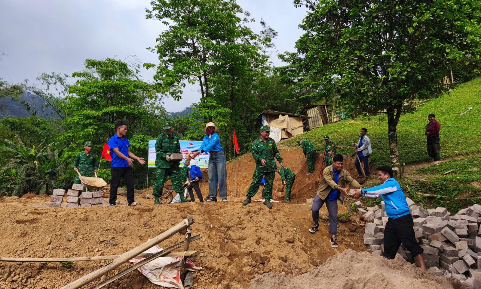 Chi đoàn Đồn Biên phòng A Vao phối hợp với xã Đoàn A Vao, huyện Đakrông, tỉnh Quảng Trị chung tay xây dựng nhà cho hộ gia đình có hoàn cảnh khó khăn thuộc Chương trình xóa nhà tạm, nhà dột nát năm 2025. Ảnh: BP Quảng Trị