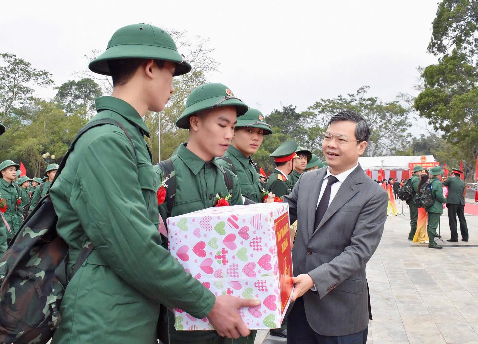 Chủ tịch UBND tỉnh Tuyên Quang tặng quà cho các chiến sỹ nhập ngũ năm 2025. Ảnh: ND