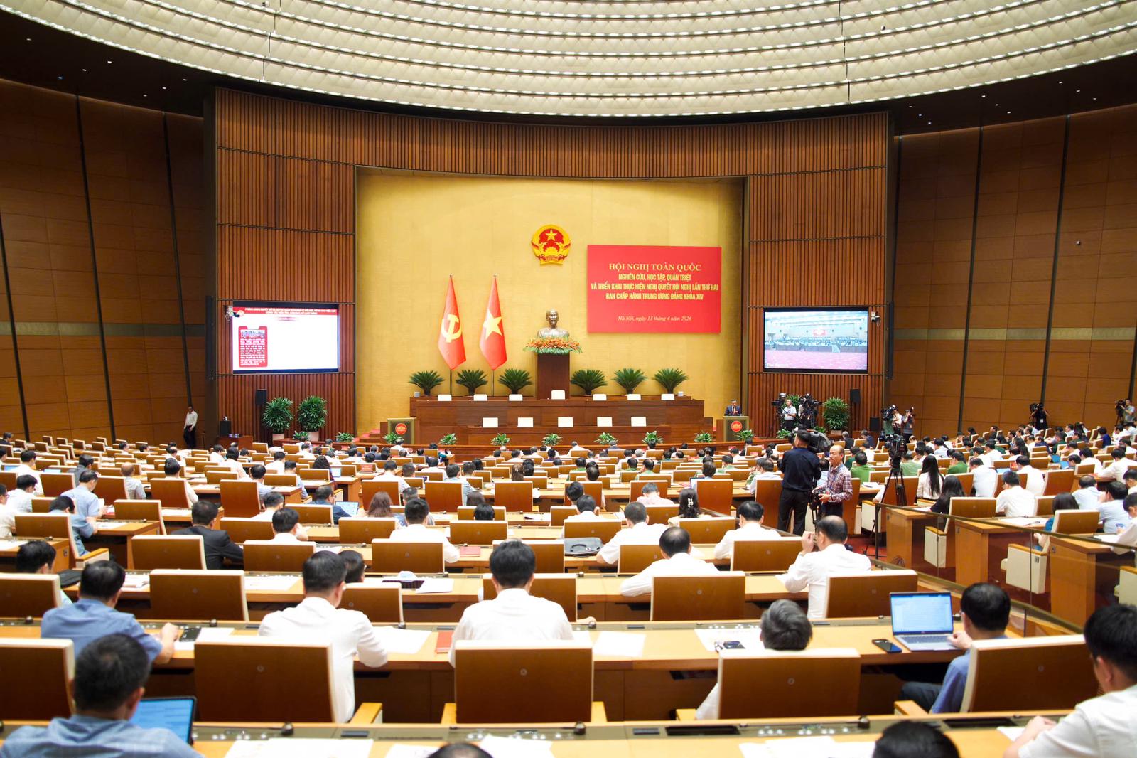 Toàn cảnh hội nghị toàn quốc nghiên cứu, học tập, quán triệt và triển khai thực hiện Nghị quyết Hội nghị Trung ương 2 Ban Chấp hành Trung ương Đảng khóa XIV. Ảnh: Đ.X