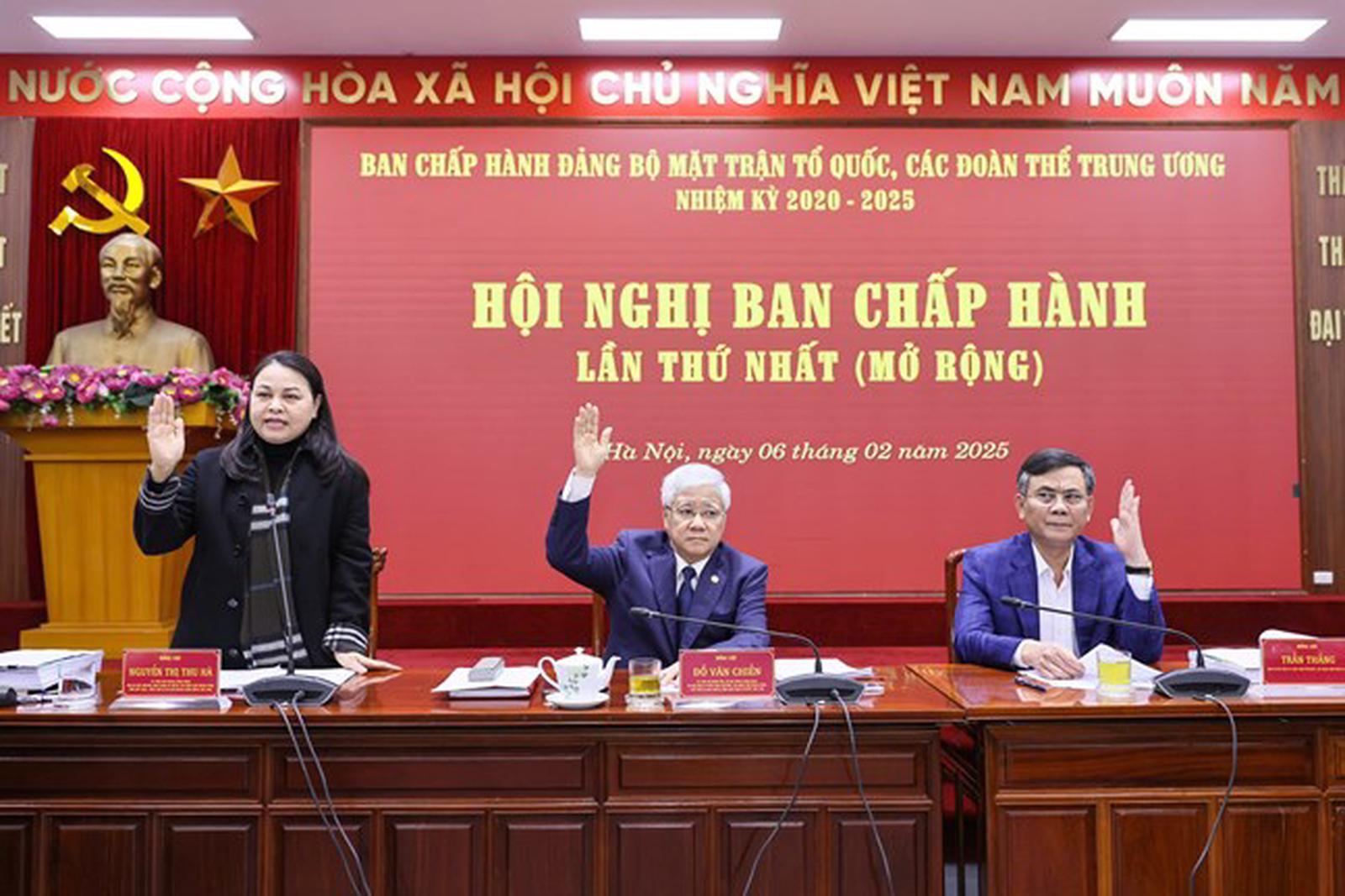 Bà Nguyễn Thị Thu Hà, Phó Chủ tịch - Tổng Thư ký Ủy ban Trung ương MTTQ Việt Nam được chỉ định giữ chức Phó Bí thư Thường trực Đảng ủy; ông Trần Thắng, Phó Bí thư Đảng ủy Khối Doanh nghiệp Trung ương được chỉ định giữ chức Phó Bí thư Đảng ủy.