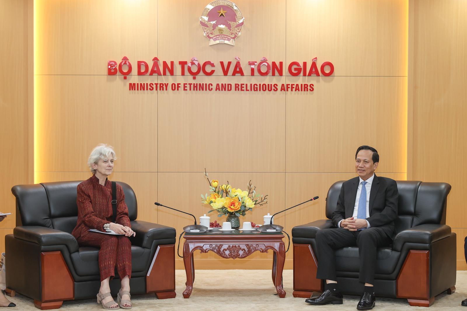 Tán thành cao với những gợi mở của bà Ingrid Christensen về nội dung hợp tác với Bộ Dân tộc và Tôn giáo nói riêng, Việt Nam nói chung trong thời gian tới, đặc biệt là tập trung đối tượng yếu thế, đồng bào DTTS - đây là những đối tượng luôn dành được sự quan tâm, ưu tiên của Đảng, Nhà nước Việt Nam, Bộ trưởng Đào Ngọc Dung cho rằng, “cần triển khai thực hiện sớm phù hợp với điều kiện thực tế khi Việt Nam thực hiện mô hình chính quyền mới”.