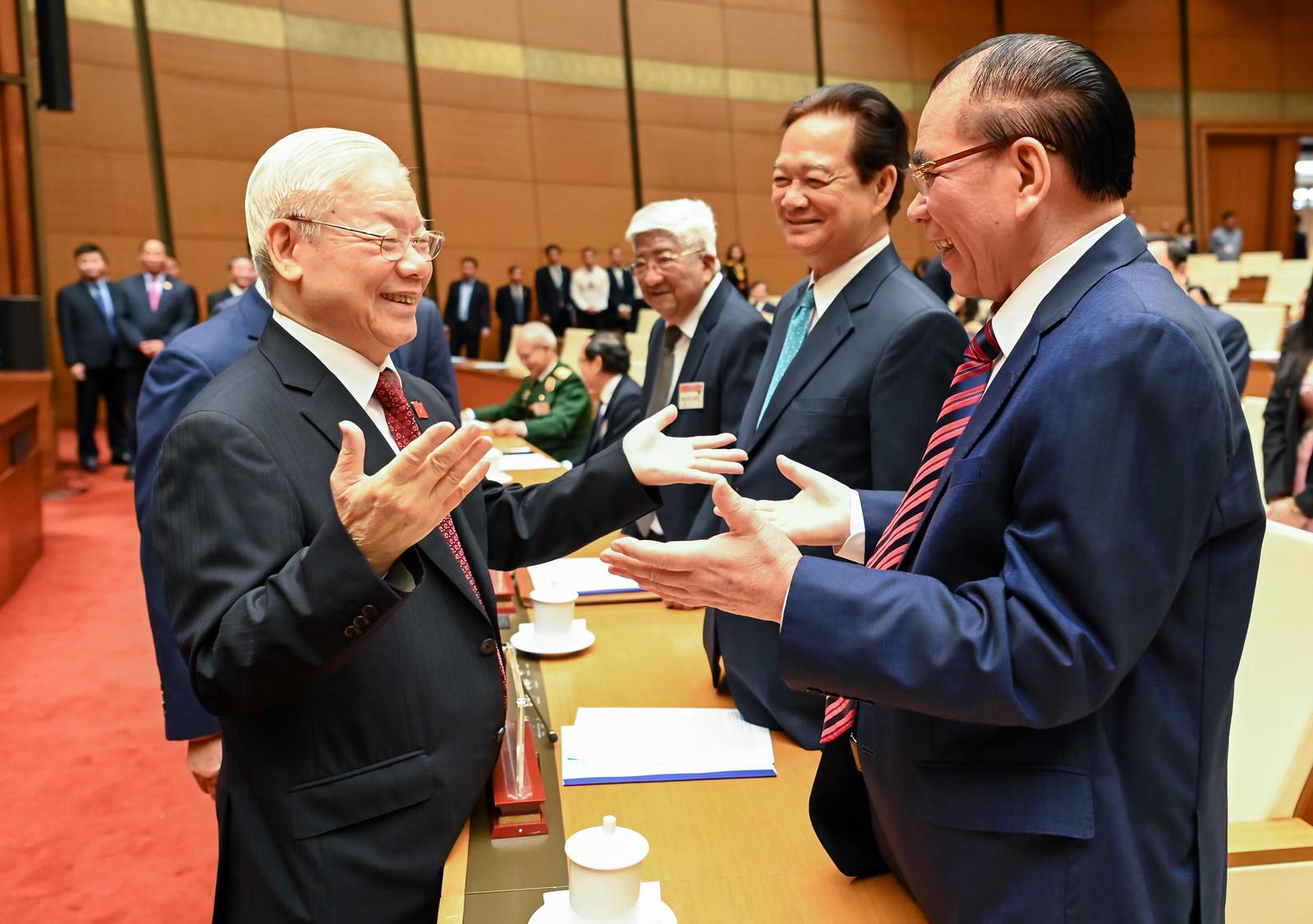 Tổng Bí thư Nguyễn Phú Trọng và các nguyên lãnh đạo Đảng, Nhà nước tại kỳ họp Quốc hội. Ảnh: P.Thắng