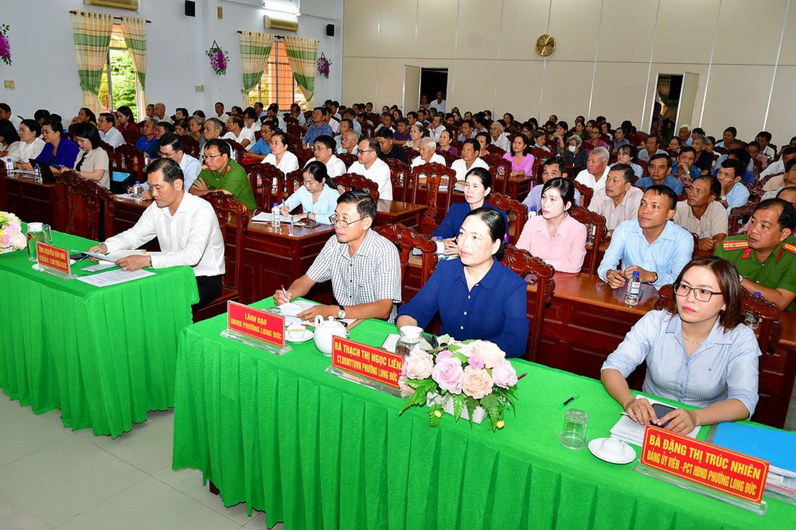Cử tri phường Long Đức với hơn 10 ý kiến, kiến nghị liên quan đến các vấn đề: Vệ sinh môi trường, an sinh xã hội, giáo dục và cơ sở hạ tầng… trên địa bàn gây khó khăn cho người dân trong thời gian qua.