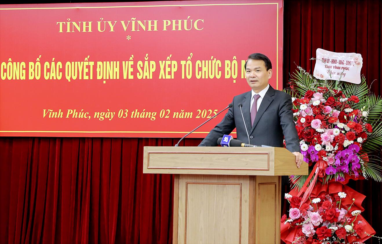 Quyết định số 1882/2025 của Tỉnh ủy về thành lập Đảng bộ Các cơ quan Đảng tỉnh Vĩnh Phúc trực thuộc Tỉnh ủy, gồm 21 tổ chức Đảng với 639 đảng viên. Quyết định số 1892/2025 của Ban Thường vụ Tỉnh ủy về chỉ định Ban Chấp hành, Ban Thường vụ, Bí thư và Phó Bí thư Đảng ủy Các cơ quan Đảng tỉnh.