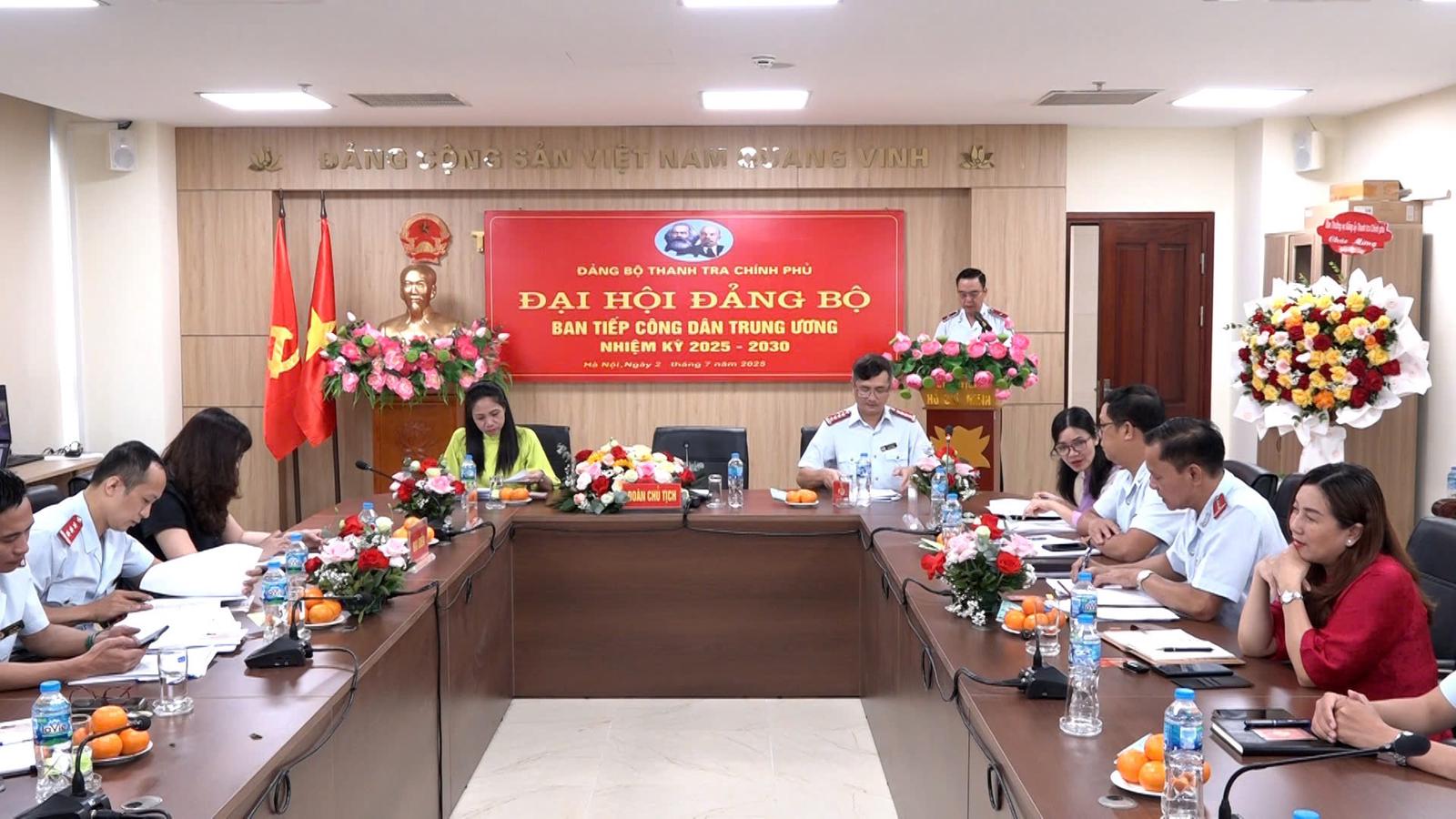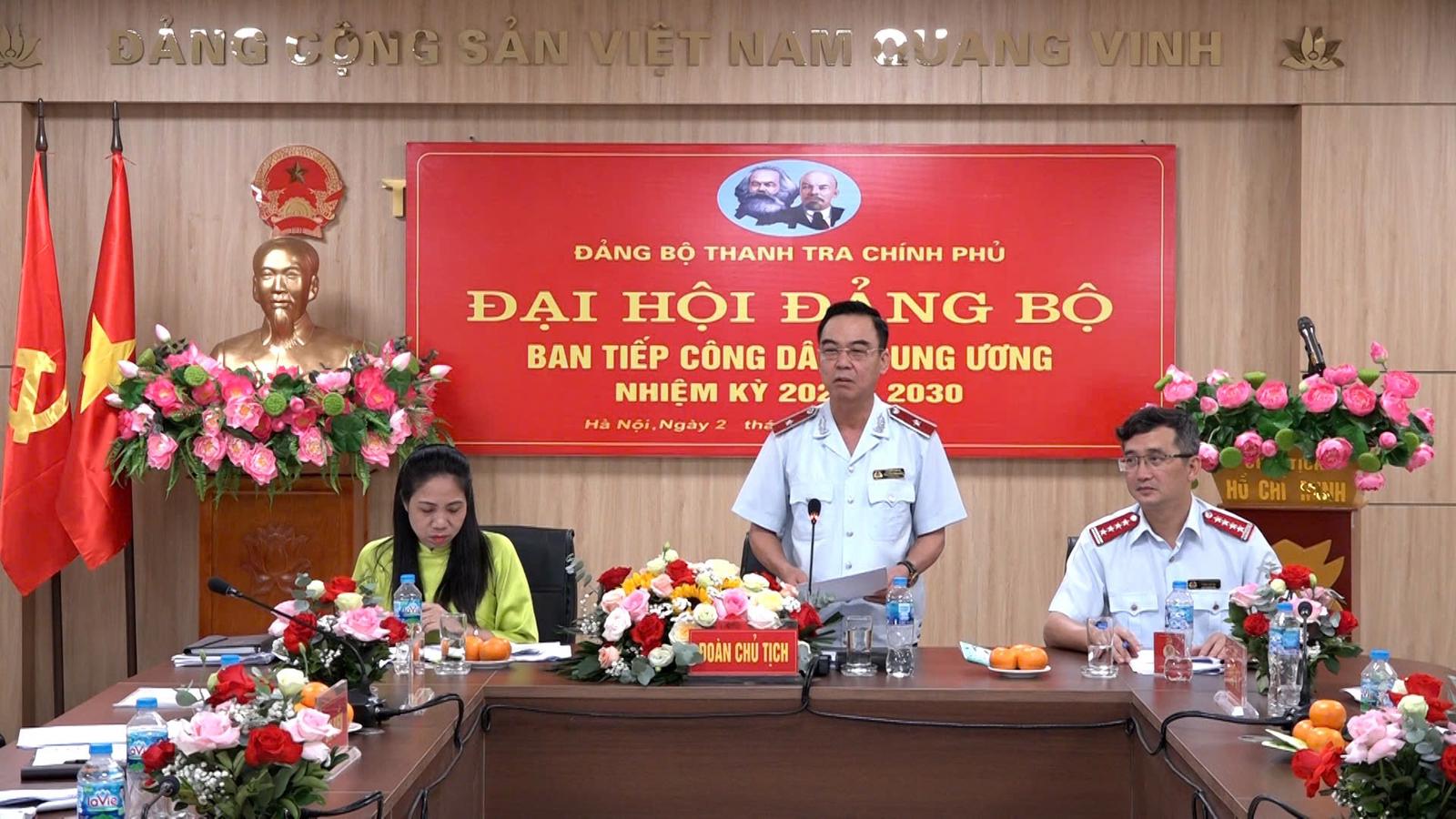 Phát biểu khai mạc Đại hội, ông Nguyễn Hồng Điệp, Bí thư Đảng ủy, Trưởng Ban Tiếp công dân Trung ương cho biết, được sự quan tâm của Ban Thường vụ Đảng ủy Thanh tra Chính phủ, sự nỗ lực của Ban lãnh đạo, tổ giúp việc và các tổ chức Đảng của Ban Tiếp công dân Trung ương cũng như các chi bộ trực thuộc đã xuất sắc hoàn thành các nhiệm vụ được giao.