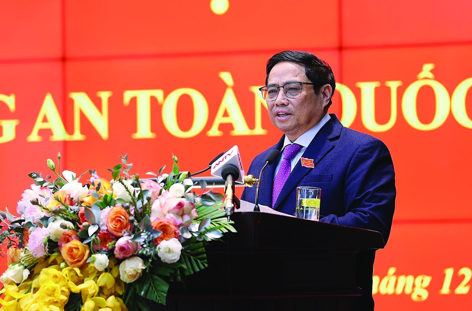 Cùng với thẳng thắn chỉ rõ một số hạn chế trong công tác và của lực lượng Công an nhân dân, Thủ tướng Chính phủ Phạm Minh Chính dự báo, phân tích tình hình và gợi mở một số nhiệm vụ, giải pháp mà lực lượng Công an nhân dân cần thực hiện trong năm 2023 và thời gian tới nhằm đấu tranh bảo vệ an ninh quốc gia, đảm bảo trật tự, an toàn xã hội.