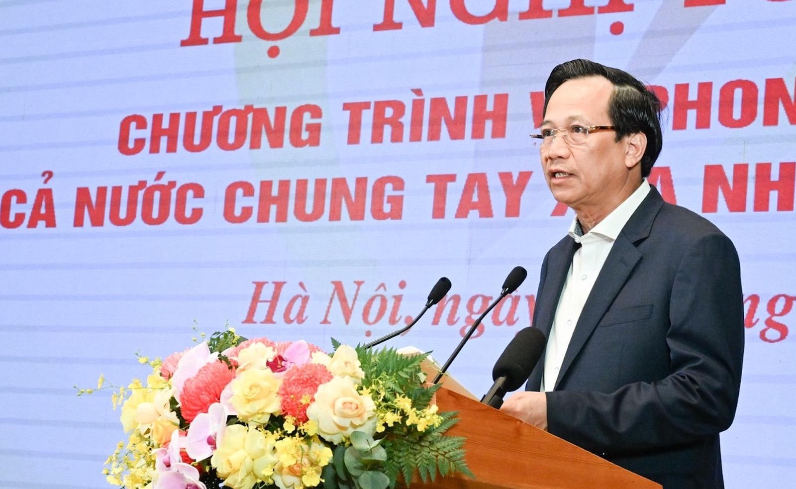 Bộ trưởng Dân tộc và Tôn giáo Đào Ngọc Dung nhấn mạnh, chương trình và phong trào thi đua xóa nhà tạm, nhà dột nát là “công trình Quốc gia đặc biệt”. Ảnh: T.Giang