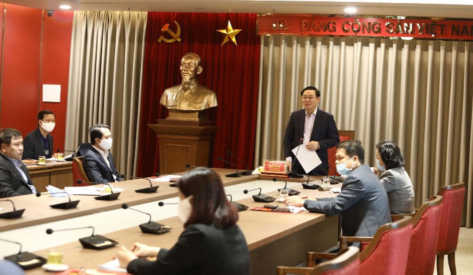 Bí thư Thành ủy Hà Nội Vương Đình Huệ làm việc với Ủy ban Kiểm tra Thành ủy. Ảnh: CTV