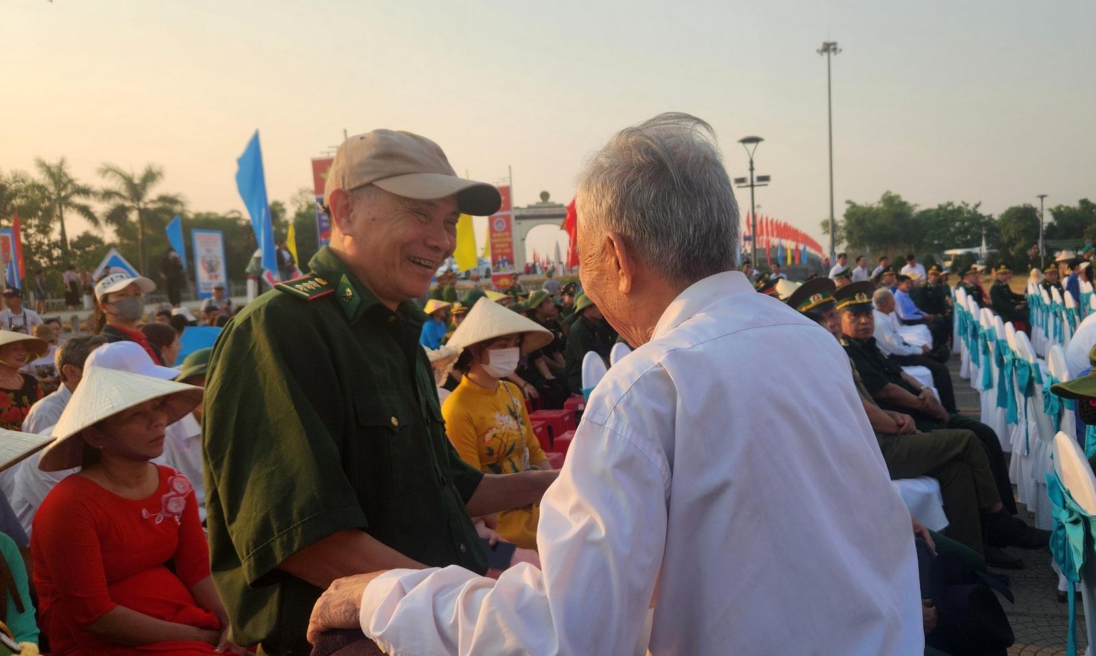 Những người lính năm xưa vui mừng phút gặp lại đồng đội bên dòng sông Bến Hải lịch sử. Ảnh: Minh Tân