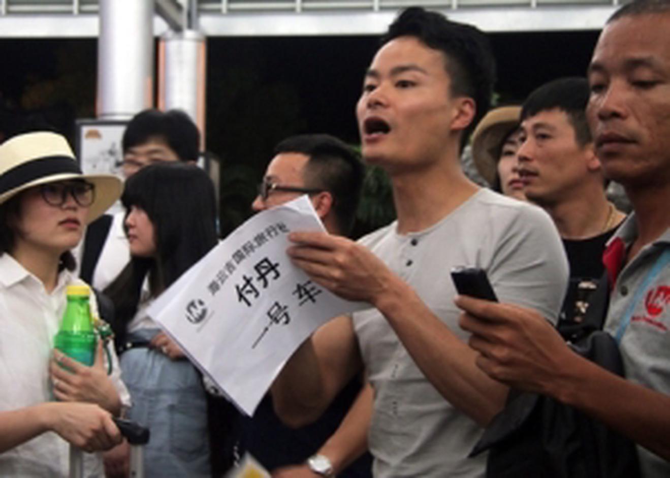 Hướng dẫn viên du lịch Trung Quốc đón khách ở sân bay Cam Ranh. Ảnh: Xuân Ngọc.