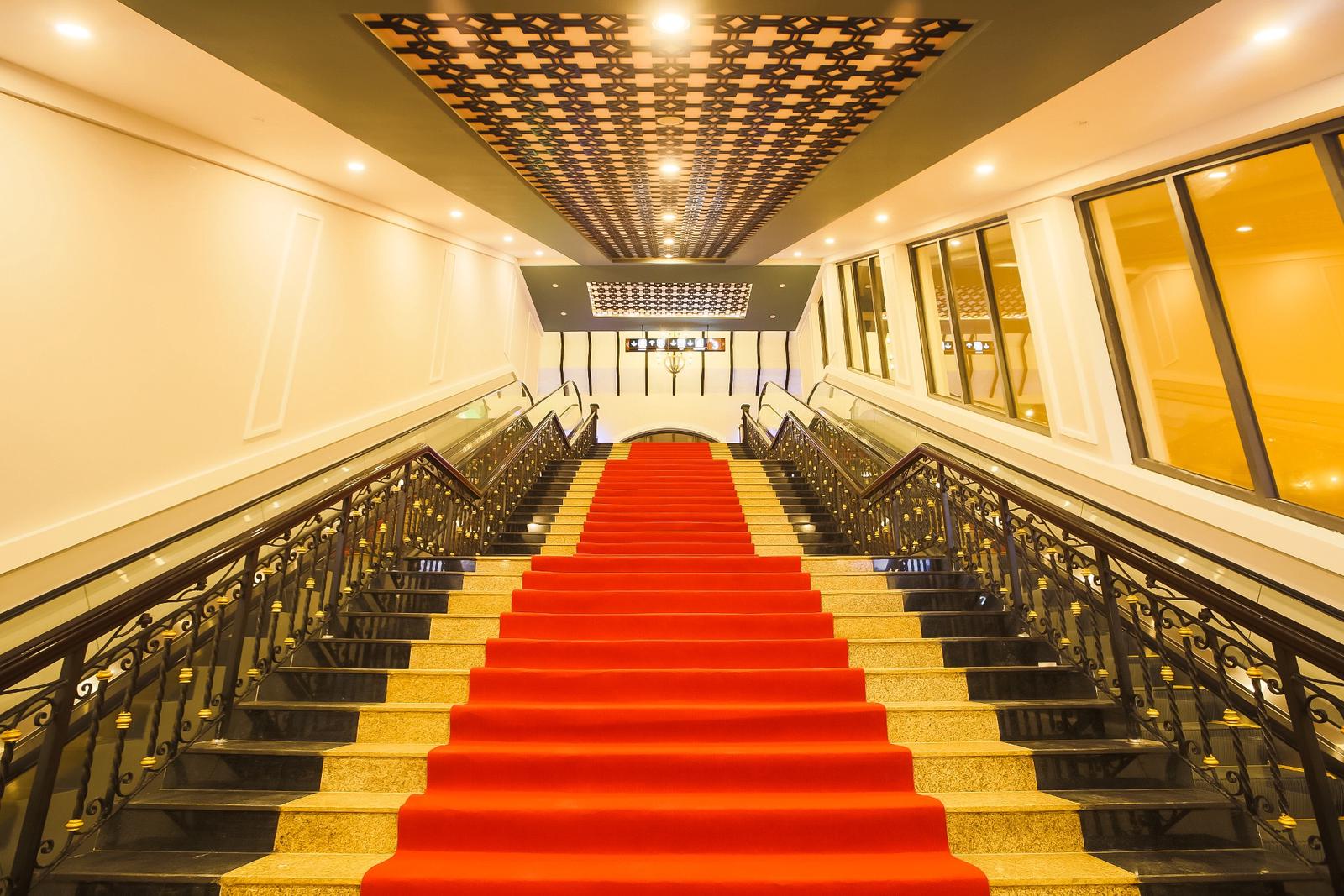 Hệ thống cầu thang dẫn lên điểm khởi hành tuyến cáp chính được thiết kế sang trọng, hiện đại với cả thang bộ và thang máy