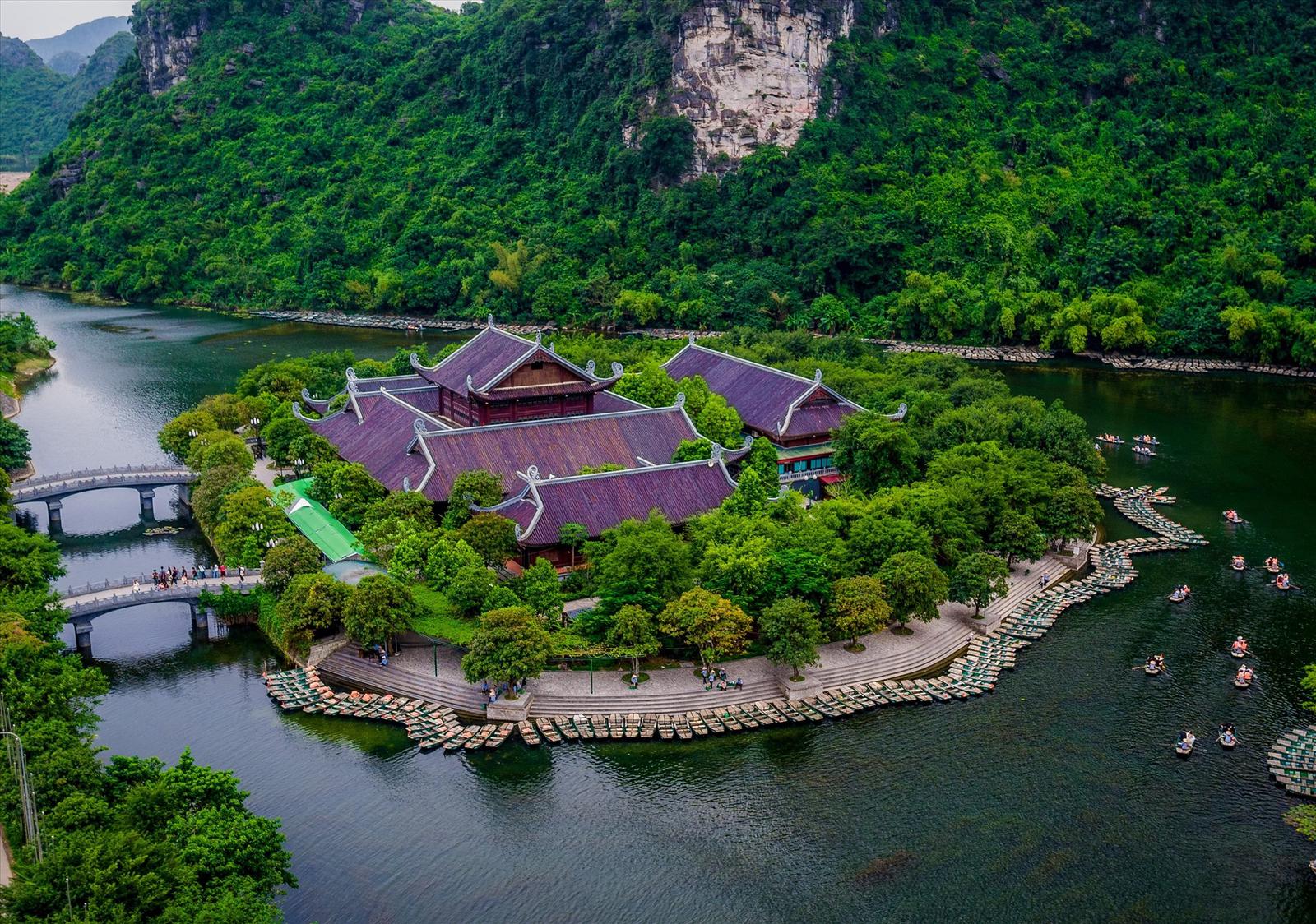 Quần thể Tràng An, chùa Bái Đính nhìn từ trên máy bay. Ảnh: TV