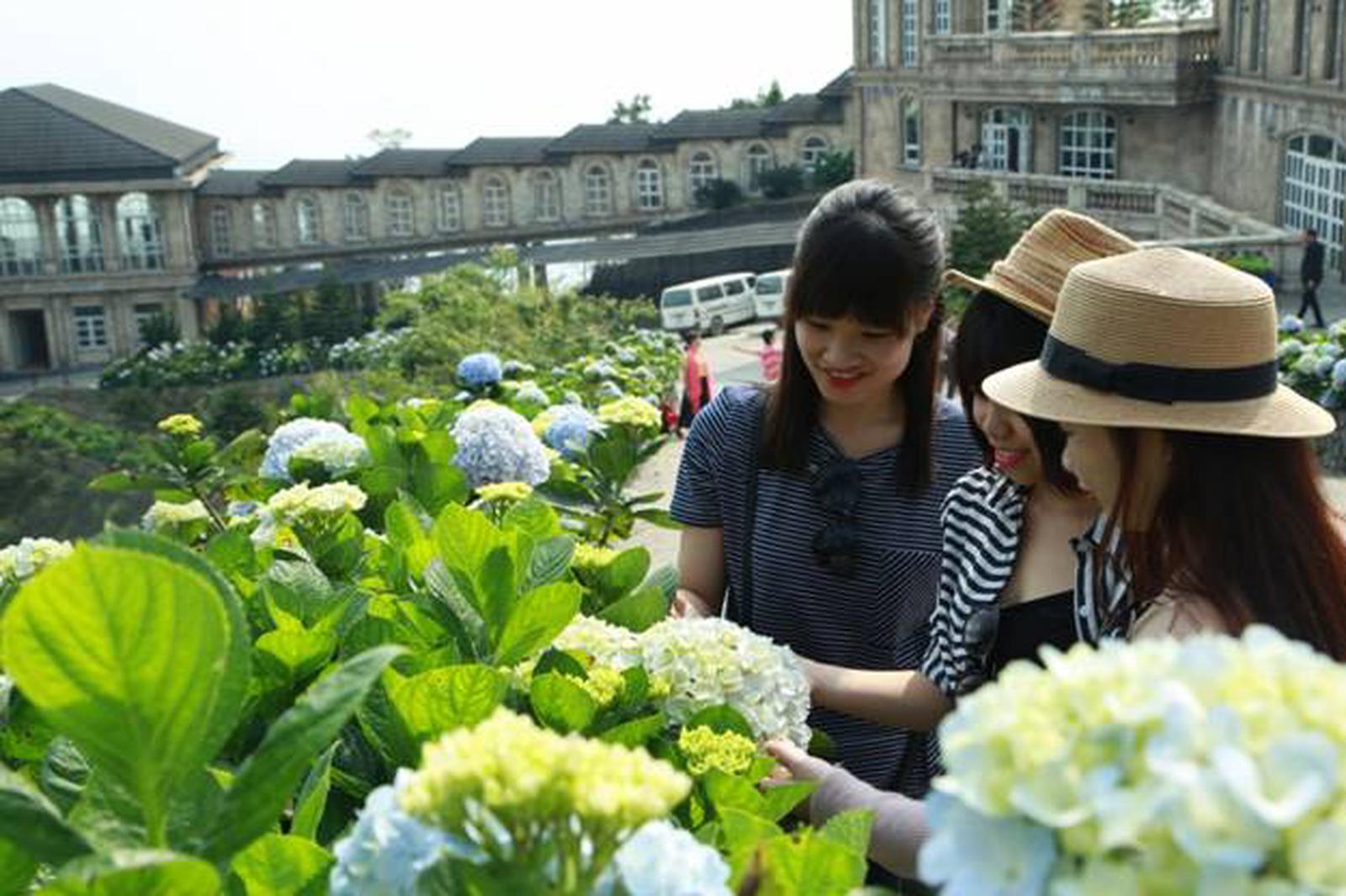 Bên trái tòa tháp nhà hàng Vista là bộ sưu tập các loại hoa Mai địa thảo, Ngọc thảo. Bên phải tòa nhà lại được tô điểm bằng hoa Thu hải đường và những loại hoa lá độc đáo khác. Con đường Yellow Flower’s Street kéo dài từ Nhà thờ đến Shop hoa ngập tràn trong sắc vàng thơ mộng, thu hút đông đảo du khách ghé đến “check-in”. Khuôn viên nhà hàng Lavender được nhuộm bằng sắc tím của một bộ sưu tập các loài hoa tím, từ lavender cho tới nữ hoàng xanh, thanh anh (Arapang), Dạ yến thảo…