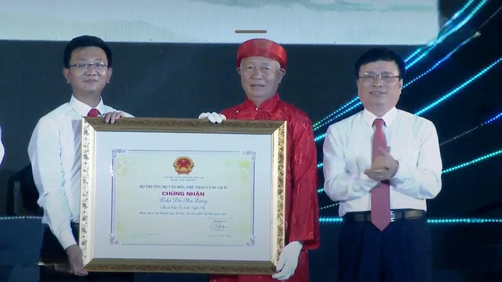 Trao chứng nhận Di sản Văn hoá phi vật thể cấp quốc gia Lễ hội đền Yên Lương. Ảnh: XT