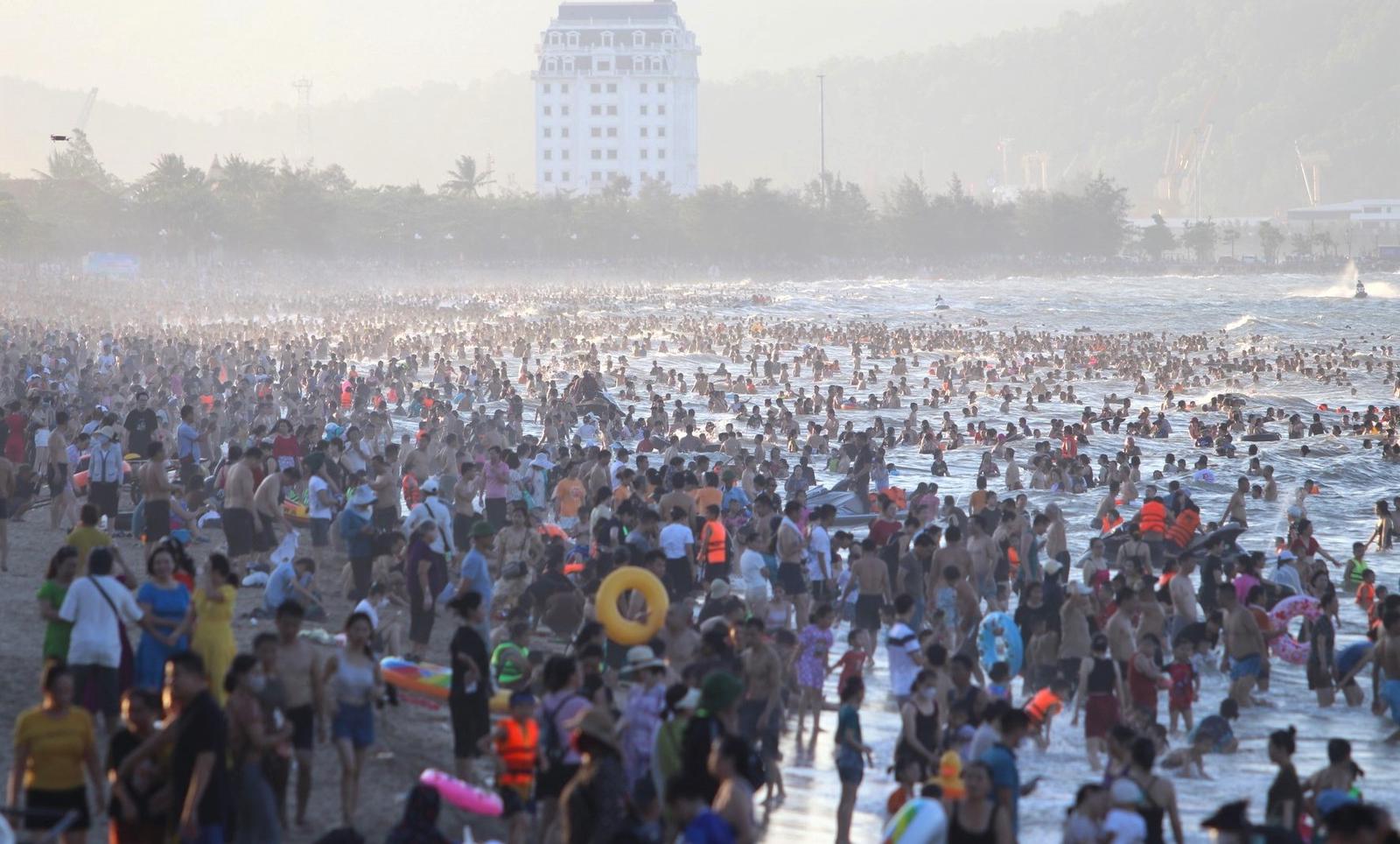 khá Biển Cửa Lò ken đặc người dân địa phương và du khách trong mùa du lịch. Ảnh: PV