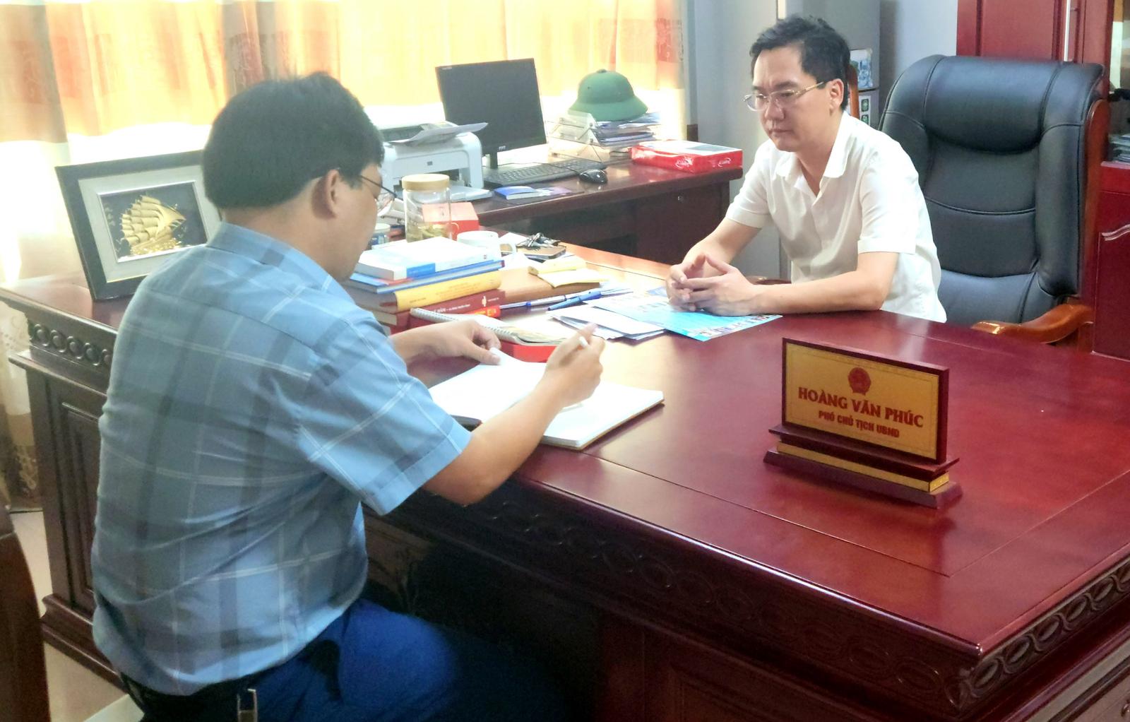 Ông Hoàng Văn Phúc, Phó Chủ tịch UBND thị xã Cửa Lò trao đổi về kế hoạch tổ chức các hoạt động du lịch năm 2024. Ảnh: Đức Mạnh