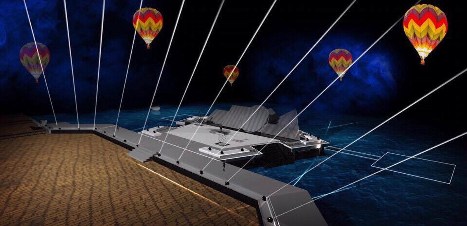 Trên không, pháo hoa rực sáng, 5 khinh khí cầu bay treo thả confetti lấp lánh. Trên mặt nước, sân khấu nổi Ngũ hành được thiết kế với hệ thống dàn nâng và kỹ thuật sân khấu quay hiện đại và 5 khối décor lớn sắp xếp theo dãy Ngũ hành sơn trở thành phông nền cho hệ thống video mapping 3D cùng hệ thống ánh sáng lazer hiện đại. Những màn biểu diễn nghệ thuật được dàn dựng công phu và thể hiện bởi hàng trăm nghệ sỹ, với những tên tuổi lớn và các đoàn nghệ thuật nổi tiếng từ khắp ba miền đất nước. Cano, thuyền kayak sẽ có những màn diễu hành liên tục, các mô hình hoa sen nổi trên mặt sông, hoa đăng rực sáng… tạo nên một sân khấu trên mặt nước có một không hai.