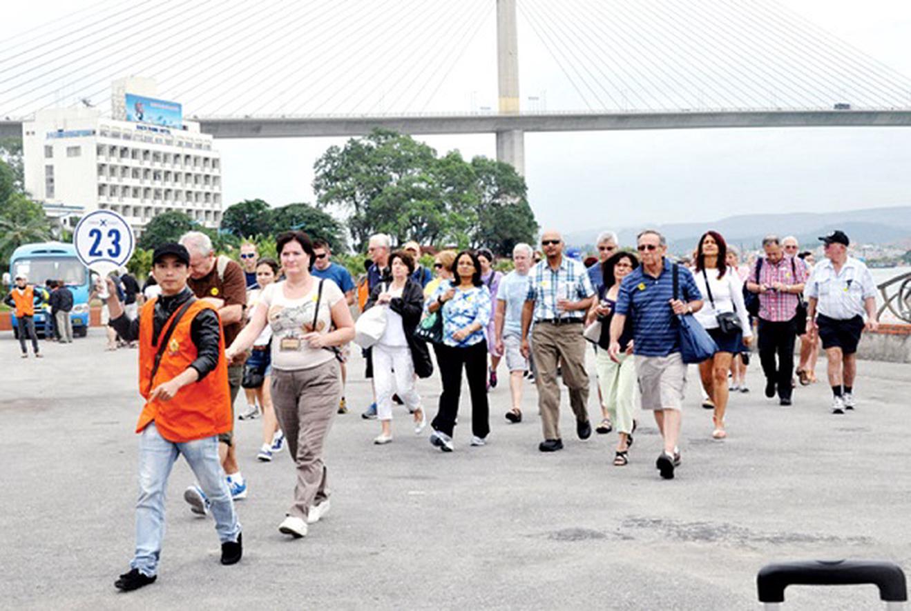 Du khách châu Âu thích thú khi đến Hạ Long. Ảnh: TL