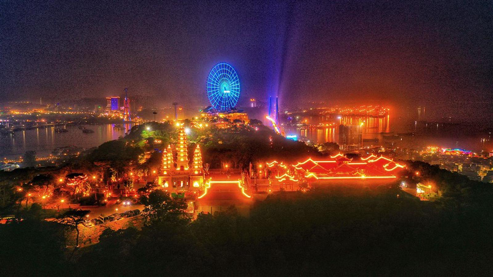 Theo lối cầu thang dẫn lên tầng hai của bảo tháp, du khách, Phật tử có thể từ đây phóng tầm mắt ngắm trọn vẹn cảnh vịnh Hạ Long với núi non nhấp nhô trên mặt biển biếc. Thiên nhiên khoáng đạt của núi, của biển, của rừng thông khiến bất cứ ai khi tới đây cũng đều thấy tâm tĩnh lại, thấy xúc cảm thanh tịnh, an yên lan tỏa.