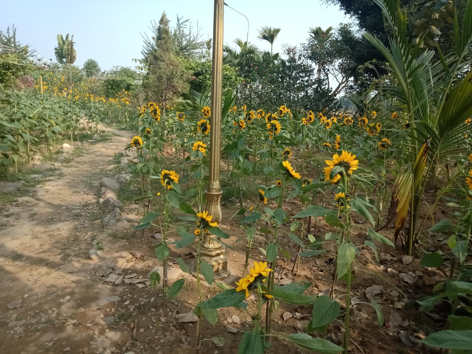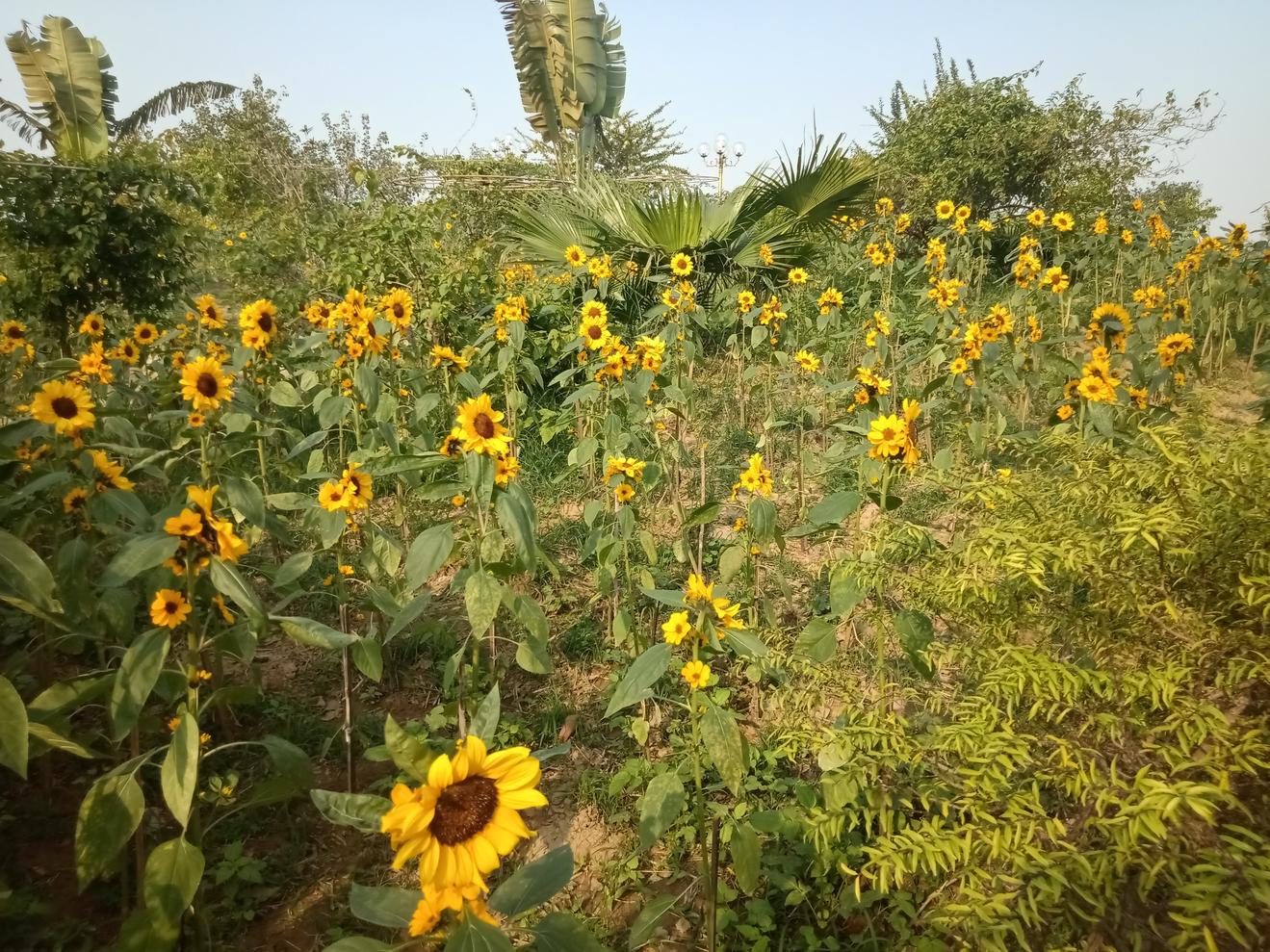 Đây là khu trang trại trồng hoa hướng dương “độc nhất vô nhị” ở xứ Thanh. Bởi vì, từ trước đến nay các trường học, cơ quan, bệnh viện thường hay tổ chức cho học sinh, cán bộ, công nhân viên chức đi sang tận xã Thái Hòa, huyện Nghĩa Đàn, tỉnh Nghệ An, cách trung tâm TP Thanh Hóa gần 70km, để tham quan, chụp ảnh vườn hoa hướng dương của tập đoàn TH. Thế nhưng, năm nay nổi lên khu vực trang trại này trồng rất nhiều hoa hướng dương, đã bắt đầu nở rộ, rất đẹp và bắt mắt. Đến đây, các đoàn tham quan người dân, học sinh, giáo viên, cán bộ, công nhân viên ngoài chụp ảnh, tạo dáng cùng hoa hướng dương, cây cảnh, tham gia các trò chơi còn được hít thở không khí trong lành, xua tan mệt mỏi sau những ngày làm việc căng thẳng.