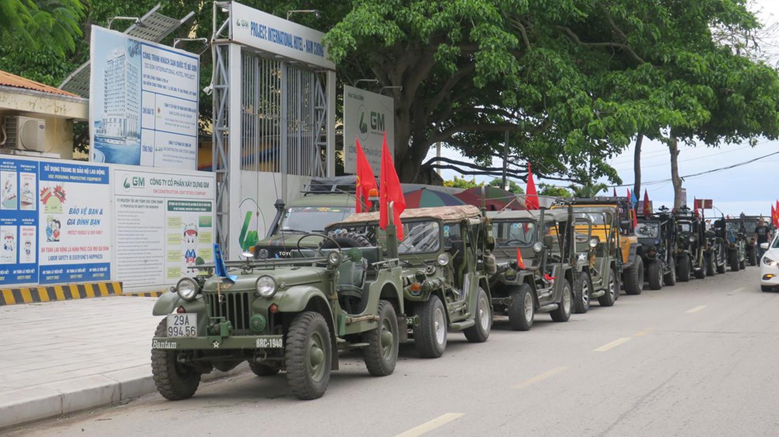 Xe Jeep các phiên bản quân sự đang chuẩn bị tham gia trình diễn tại Khi I Đồ Sơn. Ảnh KT
