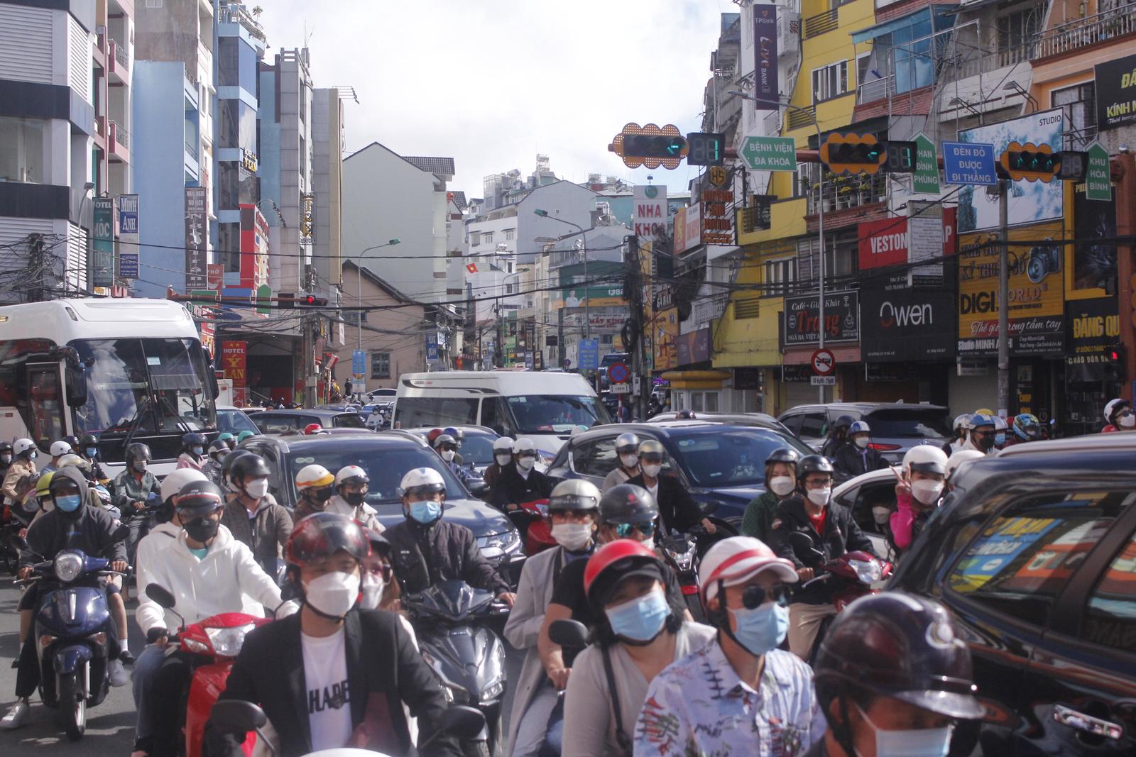 Trưa ngày 4/2, tại các nút giao thông trọng điểm như vòng xoay chợ Đà Lạt, vòng xoay Kim Cúc, ngã 5 Trường Đại học Đà Lạt, đường Trần Quốc Toản, Bùi Thị Xuân, Ba Tháng Hai… vẫn luôn trong tình trạng xe cộ di chuyển chật cứng. Mặc dù nhiều tuyến đường, nút giao thông của TP Đà Lạt đã được mở rộng gấp đôi so với trước đây, nhưng do lượng phương tiện quá lớn, những ngày qua, tình trạng quá tải, ùn tắc cục bộ tại nhiều tuyến đường, nút giao thông vẫn thường xuyên xảy ra.