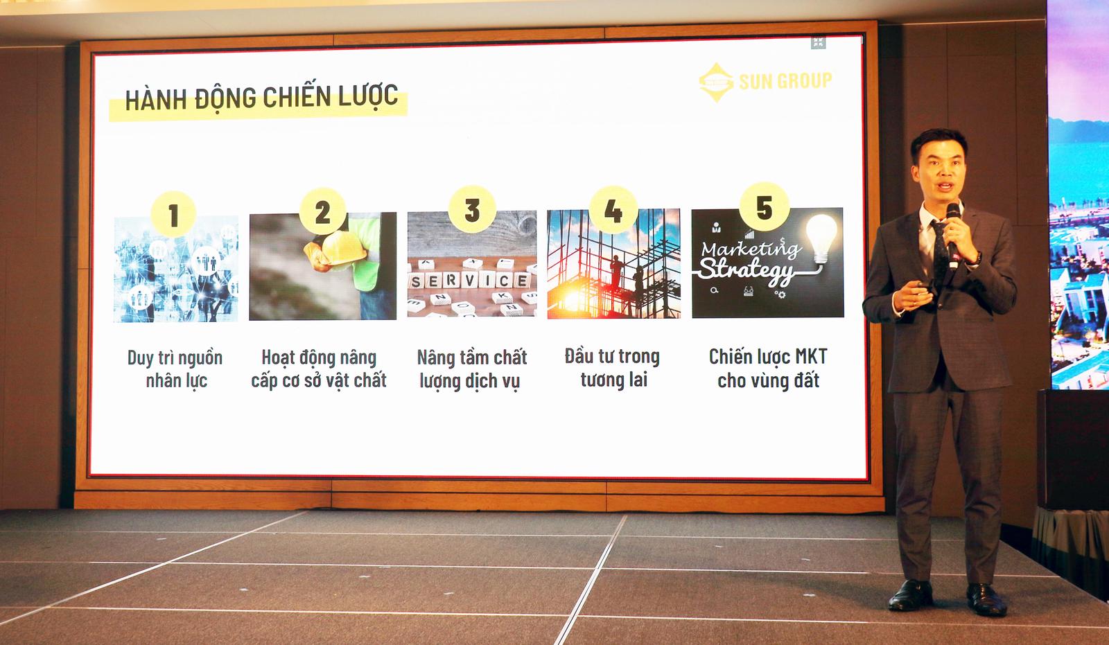 Đại diện Sun Group tại Quảng Ninh cũng đã hé lộ những dự án mới ấn tượng mà doanh nghiệp đã và đang làm, để không chỉ bổ sung sản phẩm mới có tính đòn bẩy cho du lịch Quảng Ninh như Yoko Onsen Park mà còn nâng tầm mỹ quan đô thị với các dự án bất động sản có giá trị thẩm mỹ và giá trị xã hội cao như Sun Marina Town và định hình lối sống, dẫn dắt xu hướng mới tại địa phương như du lịch nghỉ dưỡng kết hợp với trị liệu wellness, staycation… với những kiến giải trong việc định vị thương hiệu cho du lịch Quảng Ninh như một “kỳ quan bốn mùa”.