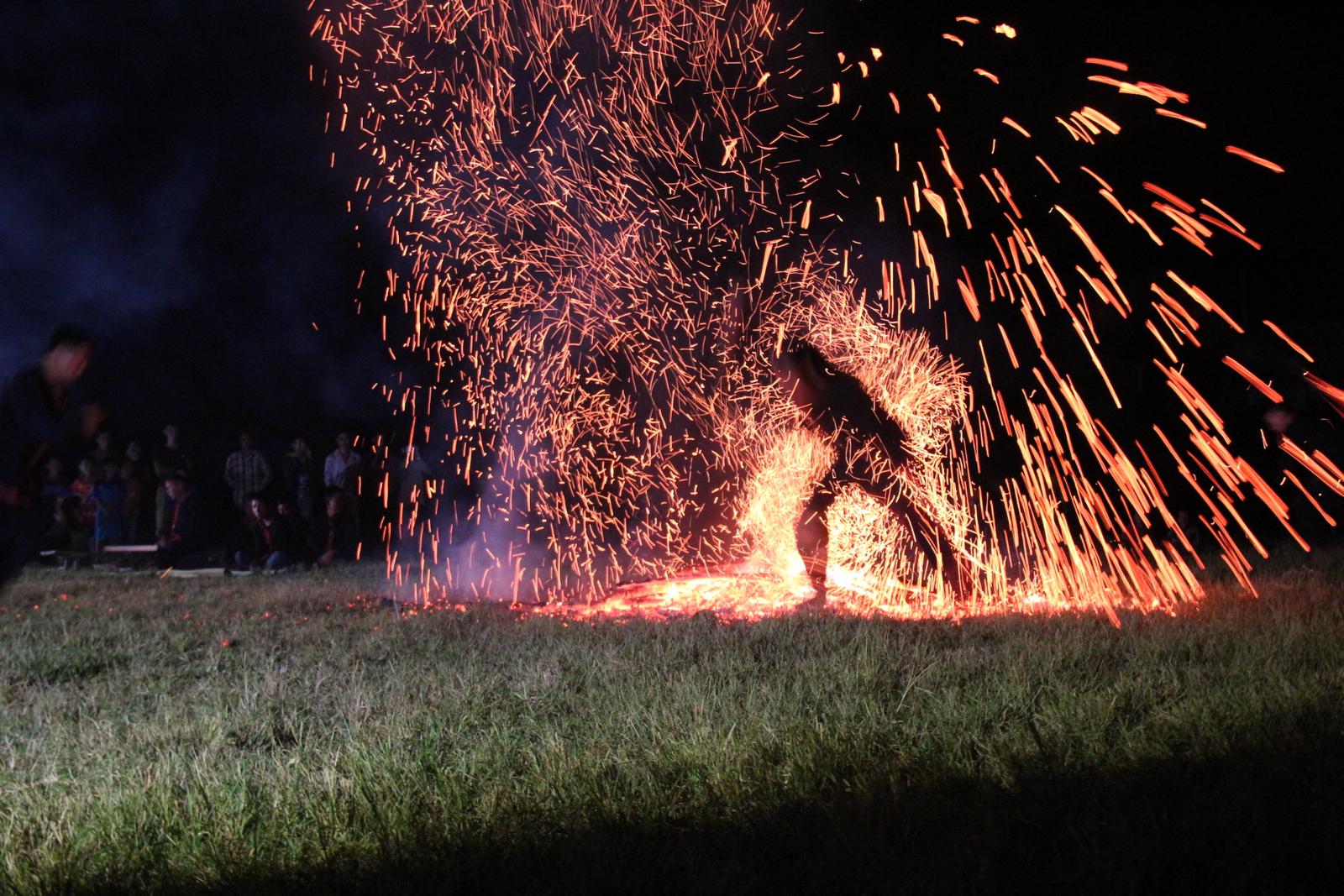 Đi chân trần nhảy múa trên đống than rực lửa có nhiệt độ lên tới 500 - 600oC vẫn là màn biểu diễn mang đầy tính thần bí mà du khách luôn chăm chú lắng xem, thót tim, thán phục sự dũng cảm của các chàng trai nơi đây