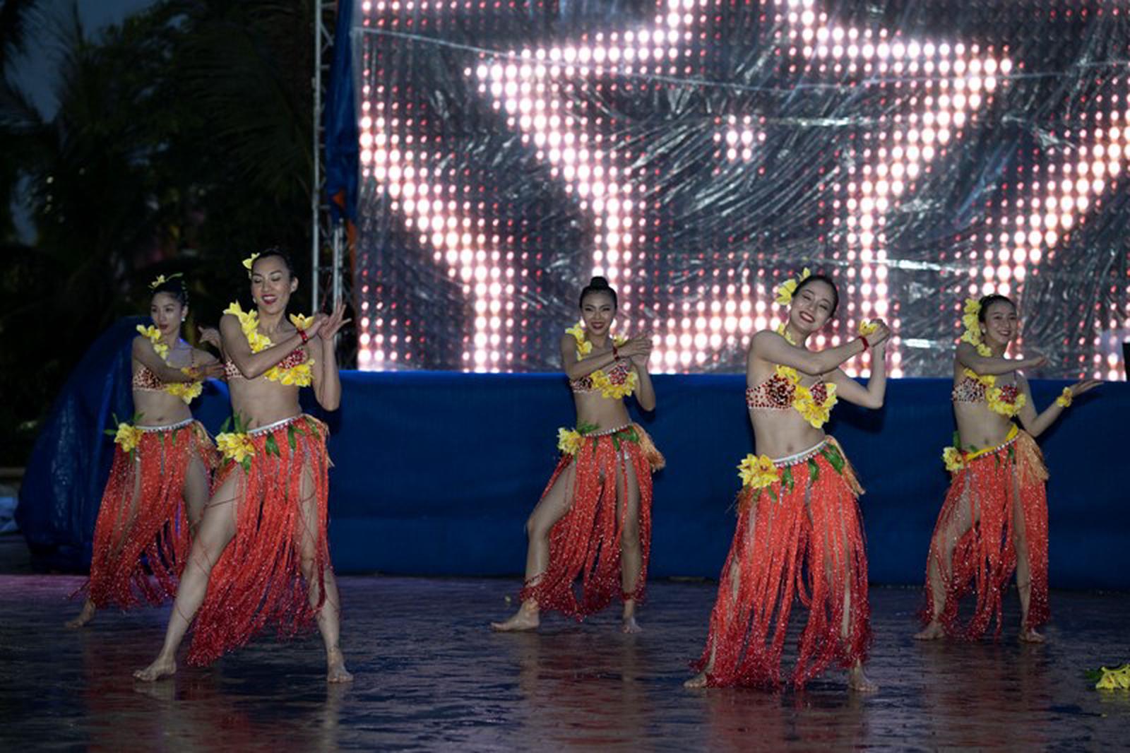 Sân khấu Sun Pool Party được đốt nóng ngay từ những phút giây đầu tiên, khi dàn nghệ sĩ đến từ Cuba trong xiêm y sặc sỡ xuất hiện. Những vũ điệu nóng bỏng trên nền giai điệu Latin sôi động, rộn ràng lập tức cuốn khách dự hào hứng nhập tiệc.
