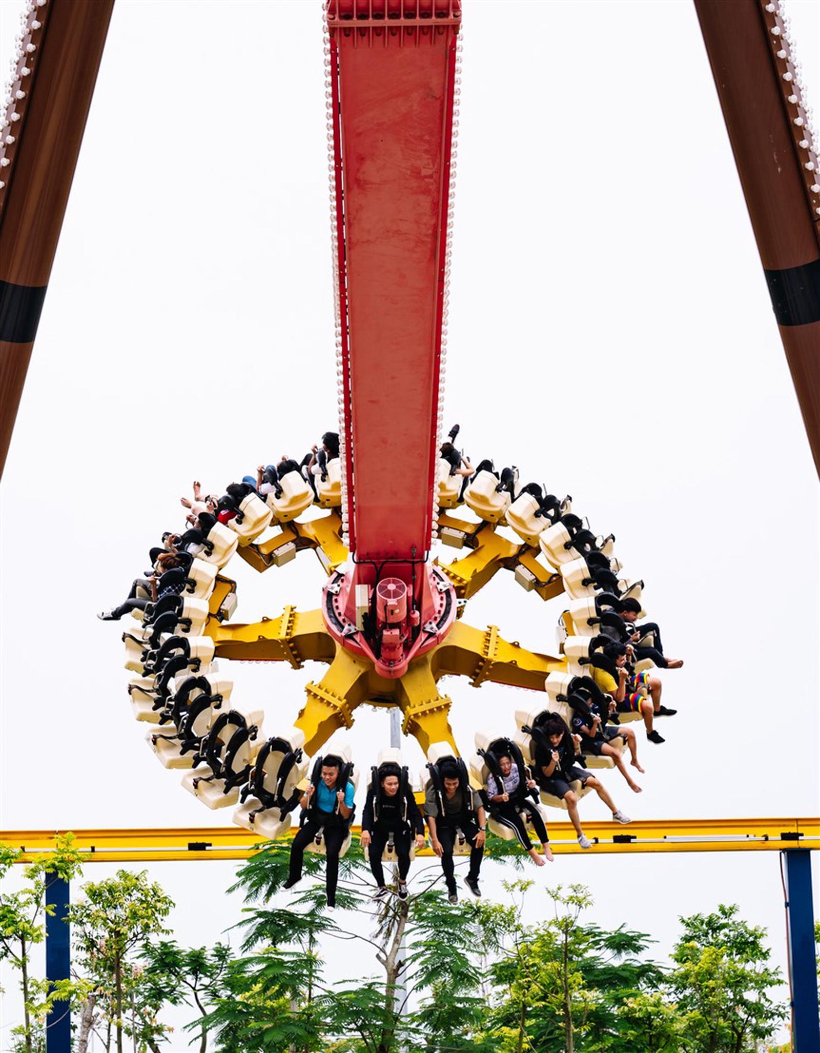 …hoặc thử “đo” độ gan dạ trên chiếc phễu khổng lồ nghiêng 45 độ “Cuồng phong lốc xoáy”, hay trải nghiệm hành trình “Cưỡi rồng vượt thác” chinh phục đại dương… để biết khả năng bùng nổ của mình tới đâu.